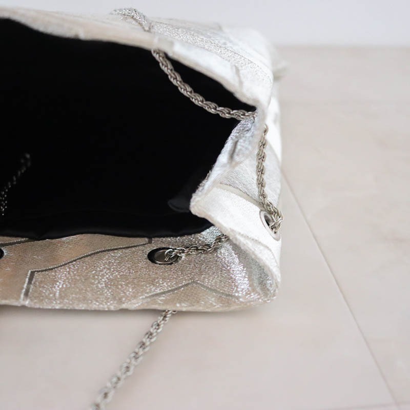 シンプルなメタリックなバッグと思いきや、和の雰囲気も楽しめるバッグとなりました。
