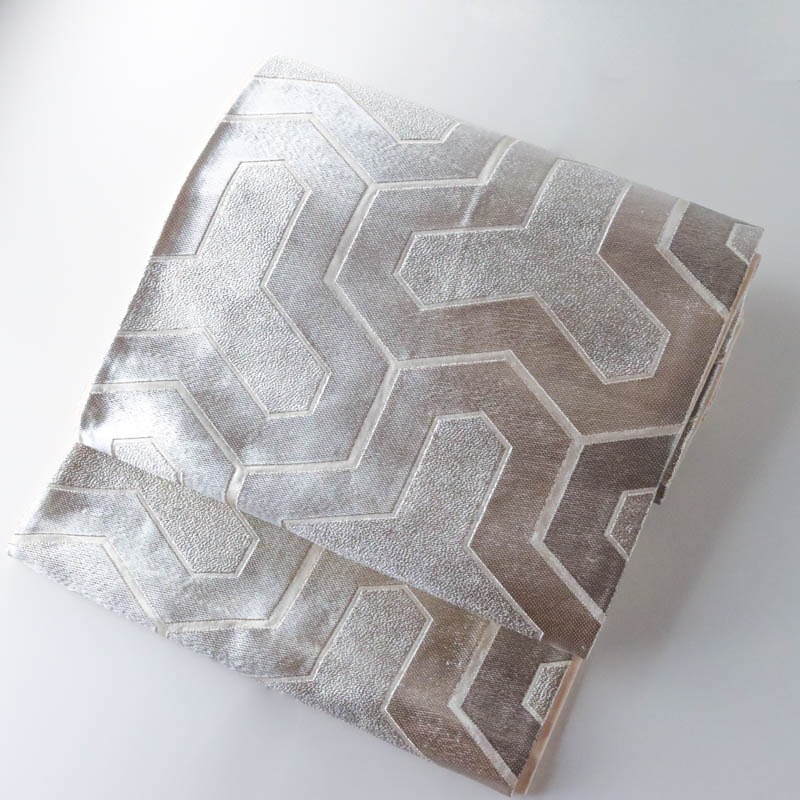 今回はツヤ感の美しい毘沙門亀甲柄のシルバーの袋帯からDrawstring Bag Large へとリメイクいたしました。