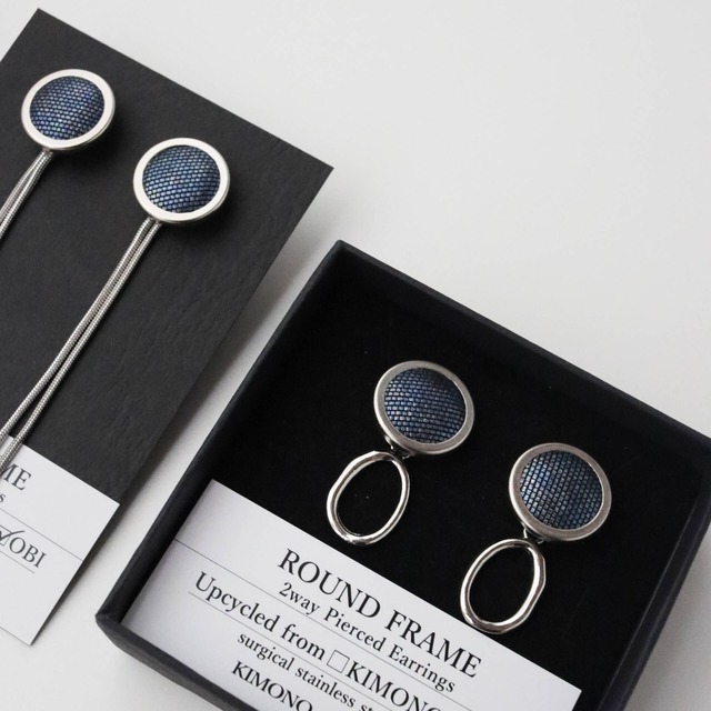 Round Fram 2way Pierced Earrings/メタリックブルー /帯ピアス