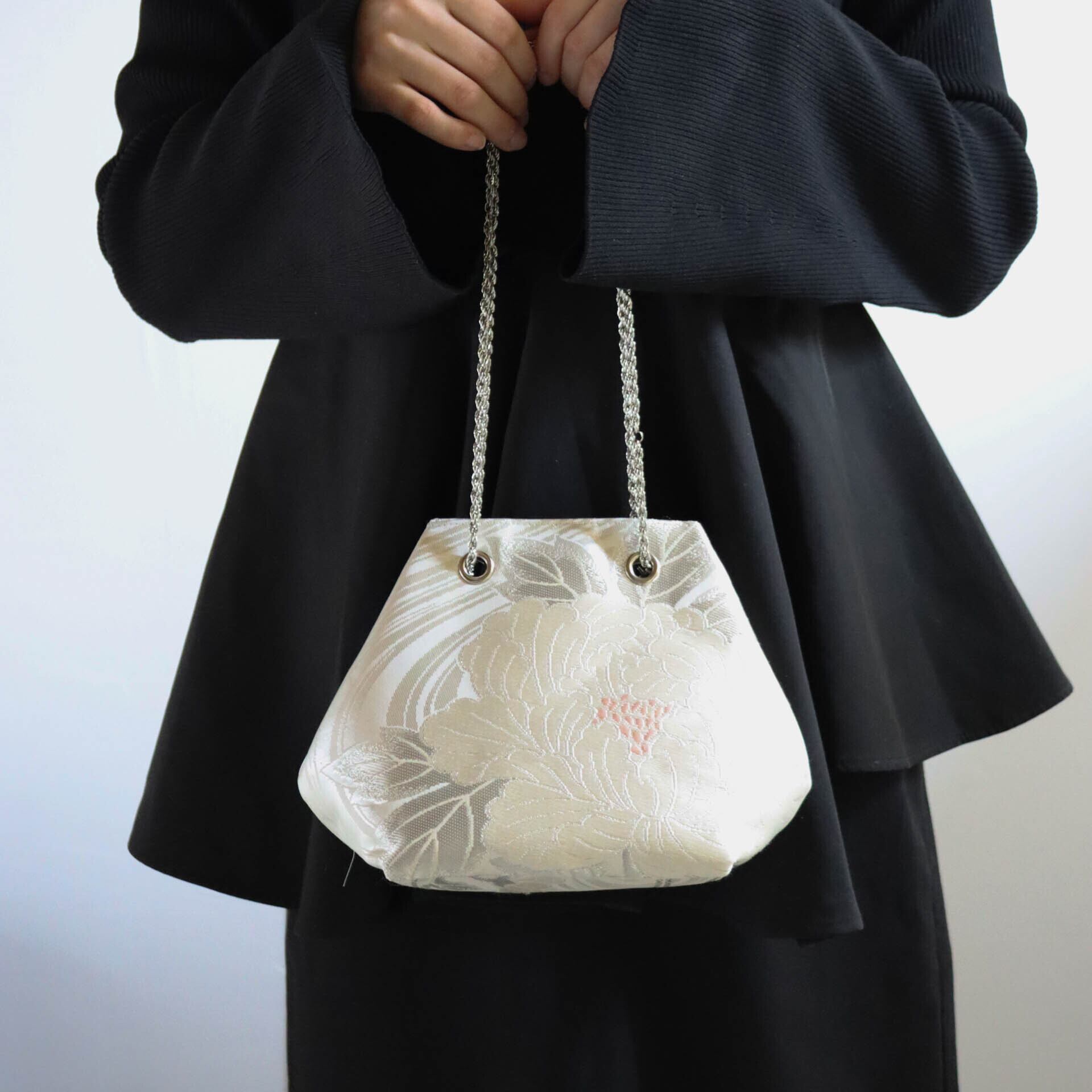 Obi Drawstring Bag Cube /シルバー牡丹/Silver Peony