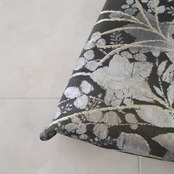 チャコールグレーの地色にシルバーの花模様、ホワイトゴールドの枝模様が描かれたシックな雰囲気のバッグです。