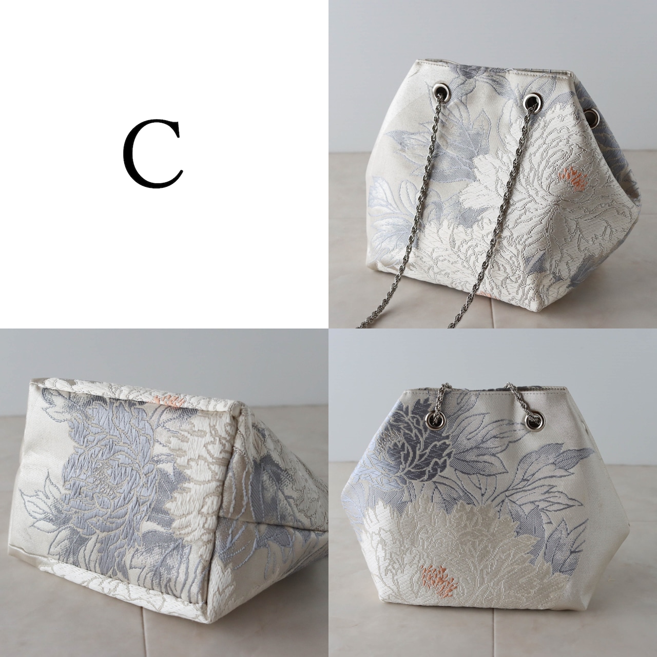 Obi Drawstring Bag Cube /白銀牡丹/silver peony