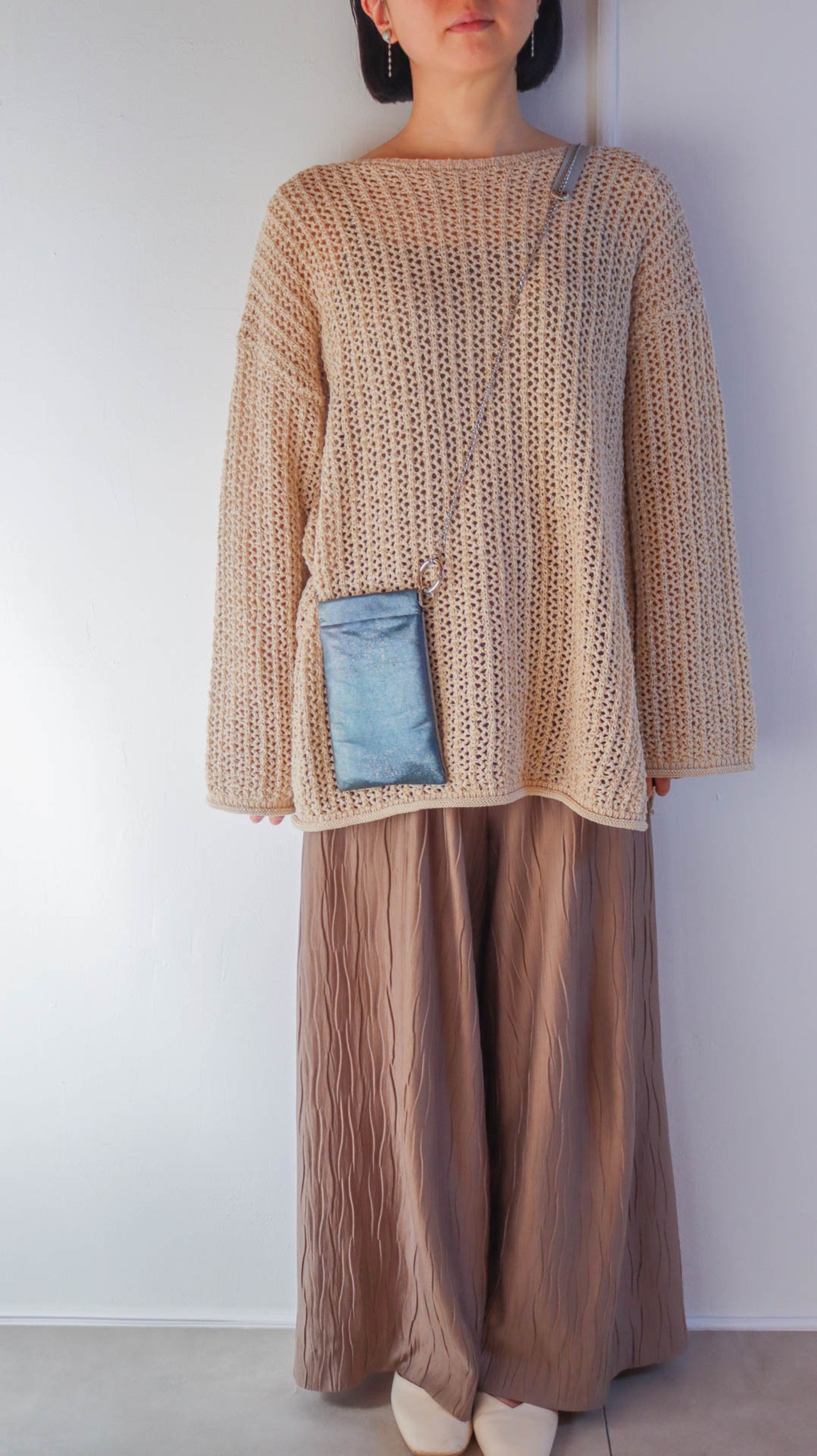 Smartphone pouch shoulder /ちぎり箔ミントピンク/Sparkling mint pink