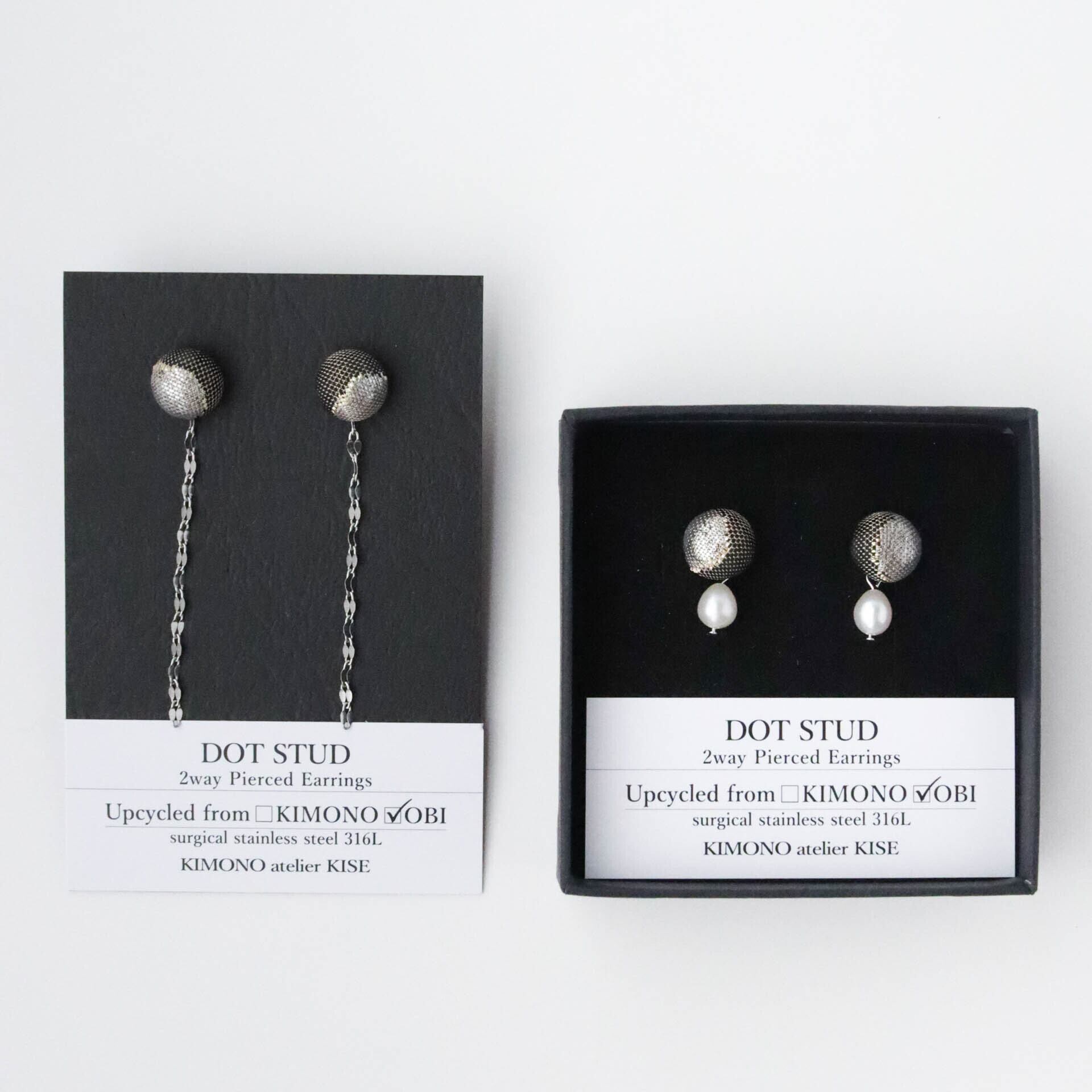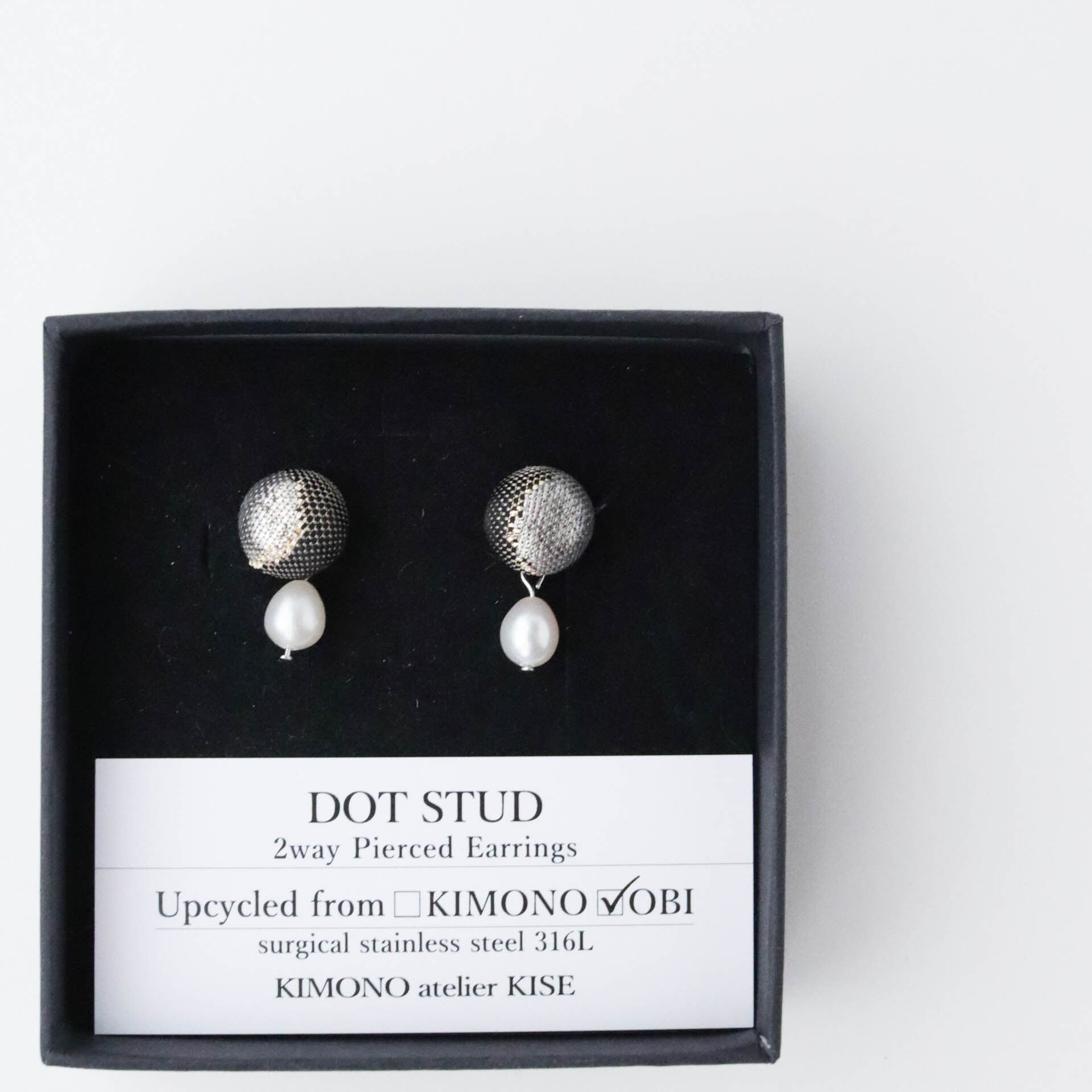 Dot Stud 2way Pierced Earrings /チャコールハーフ/帯ピアス