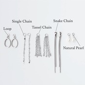 チャーム(5種)、ピアスまたはイヤリングをご選択いただけます