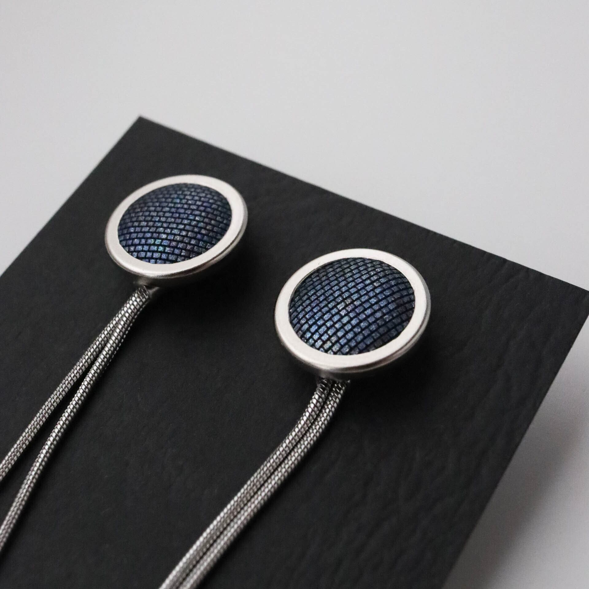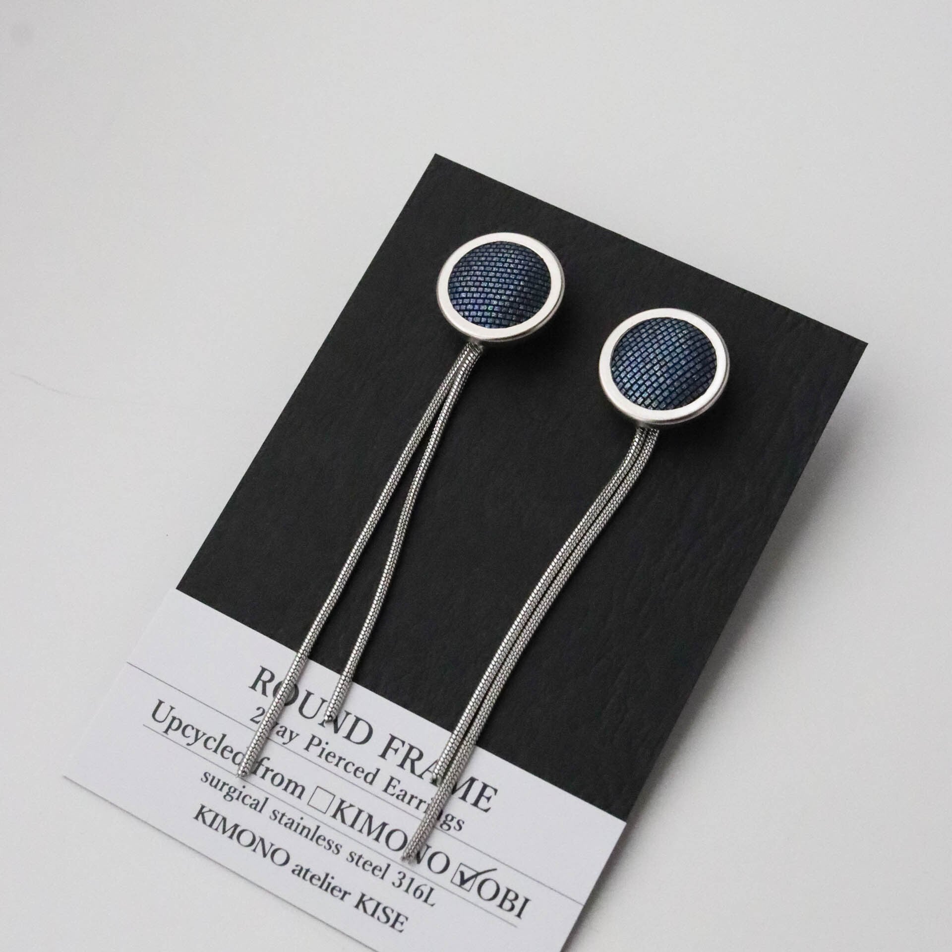 Round Frame 2way Pierced Earrings /ネイビー/帯ピアス