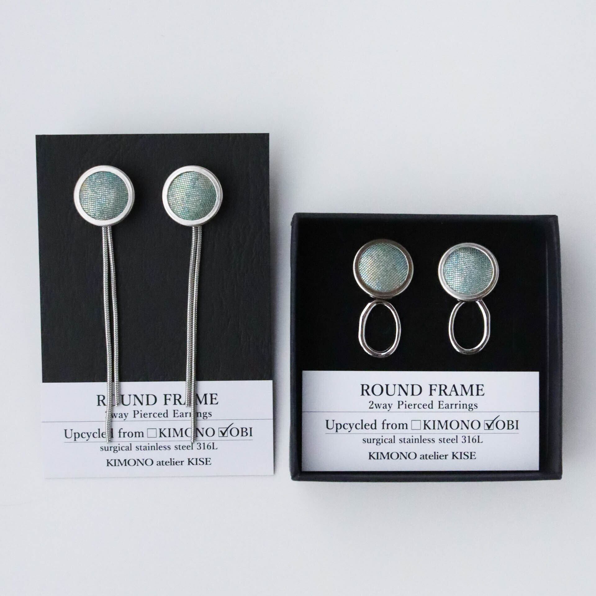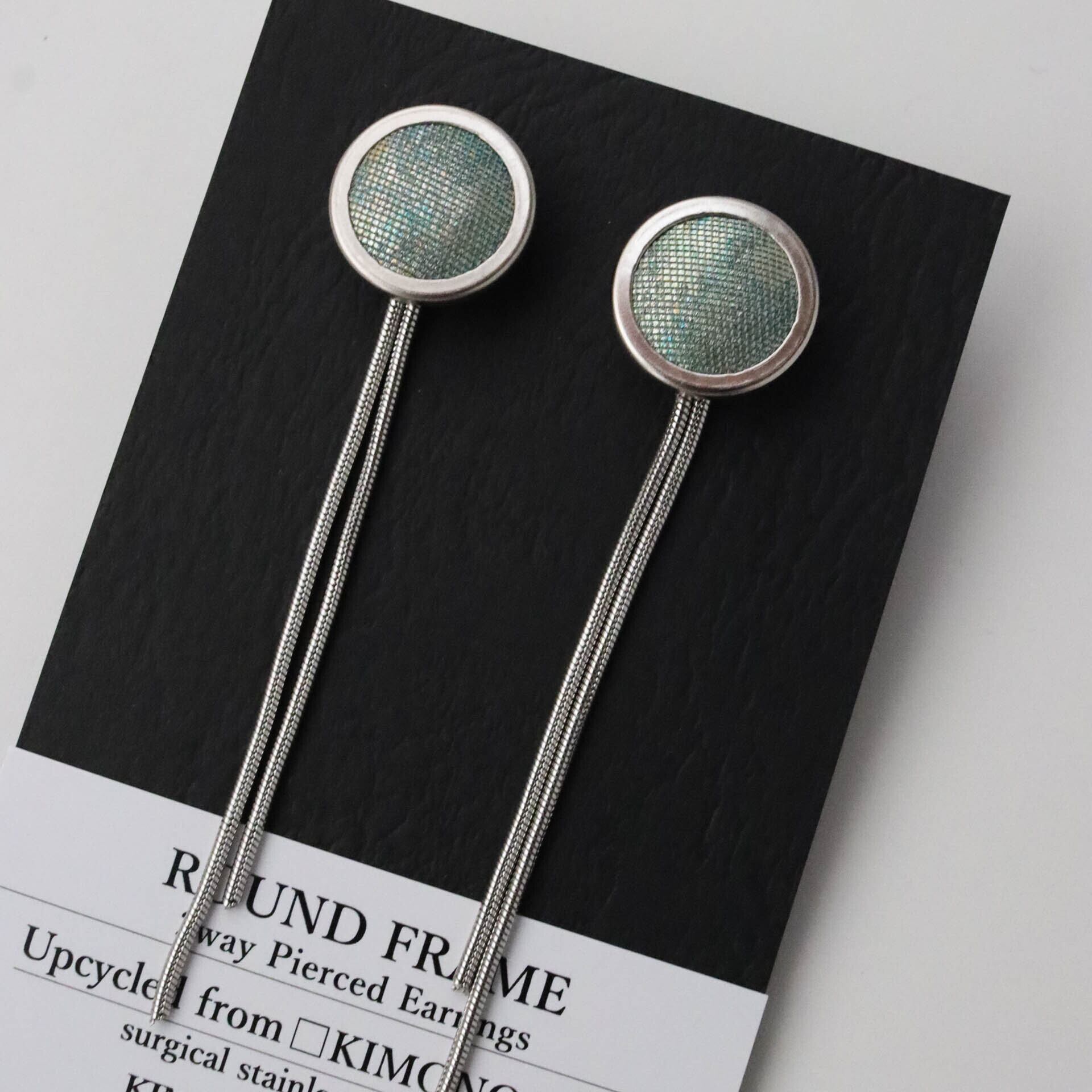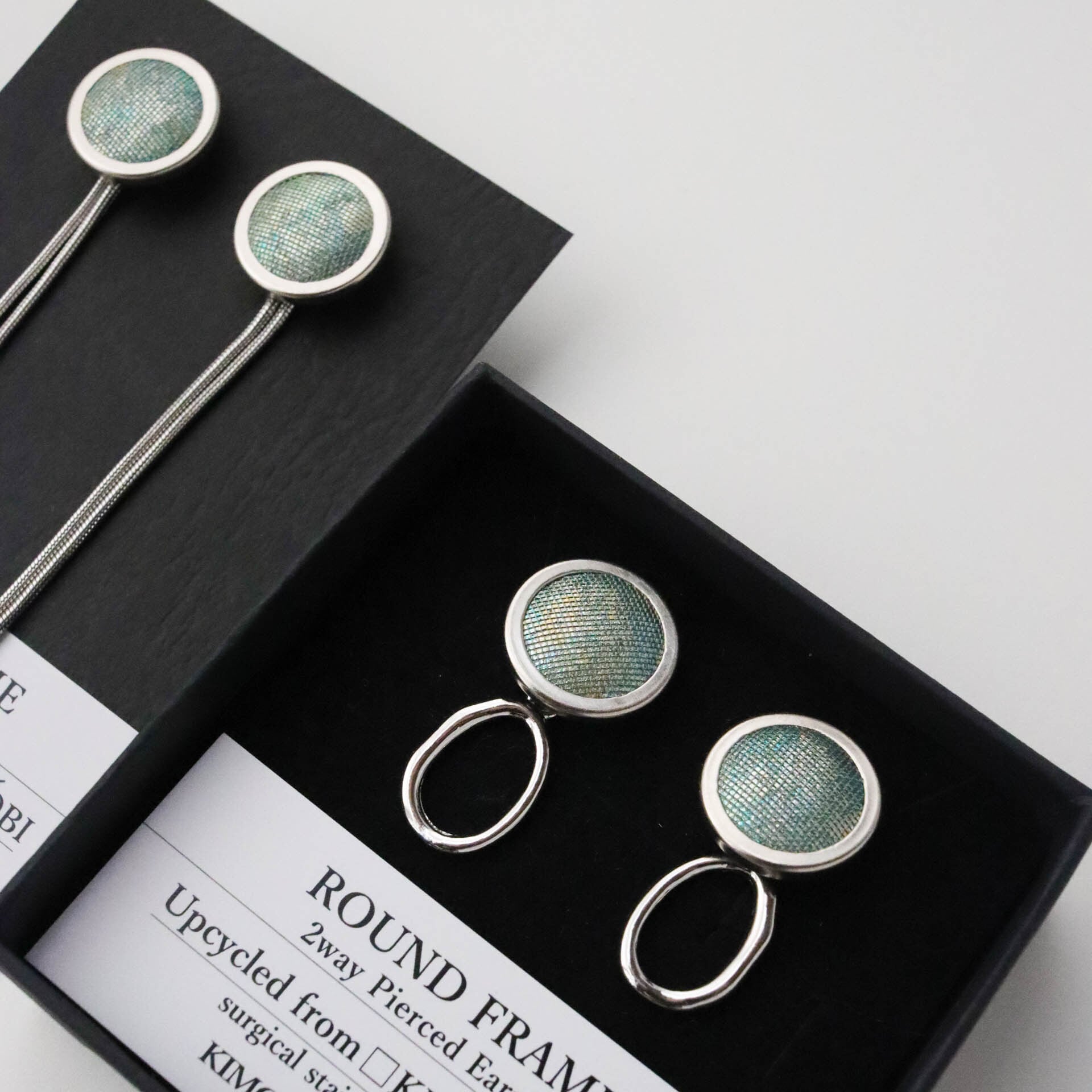 Round Frame 2way Pierced Earrings /グリーン-睡蓮/帯ピアス