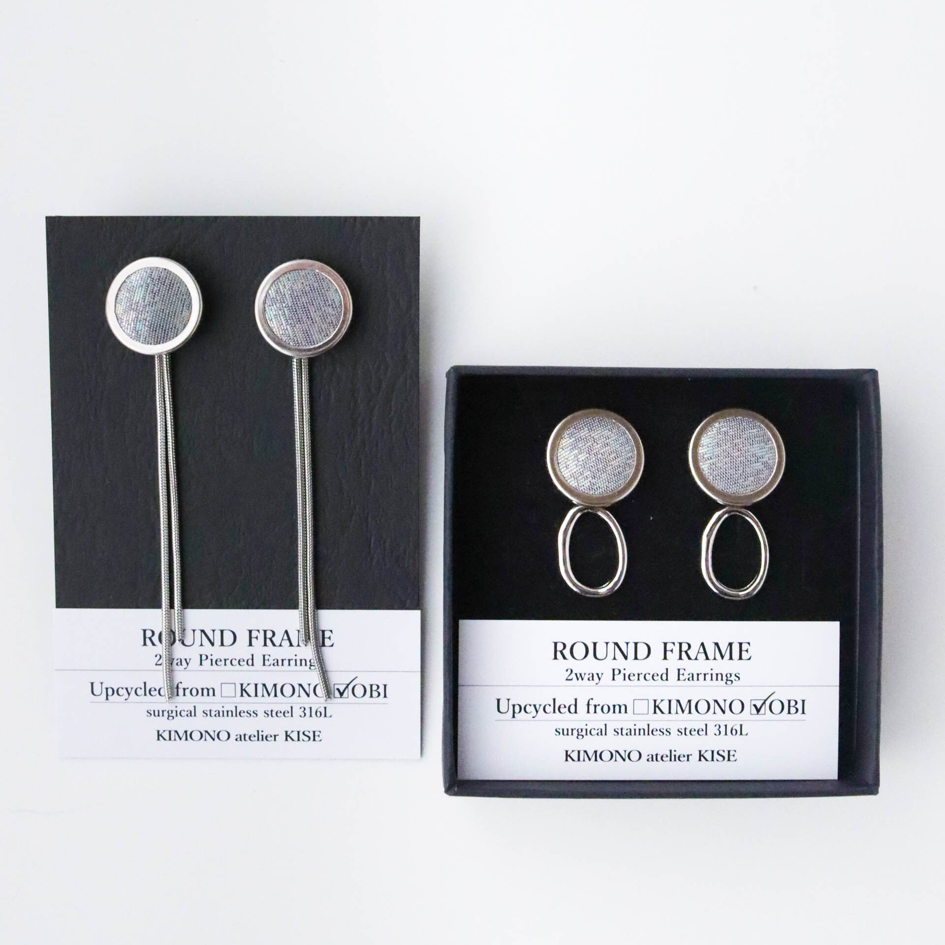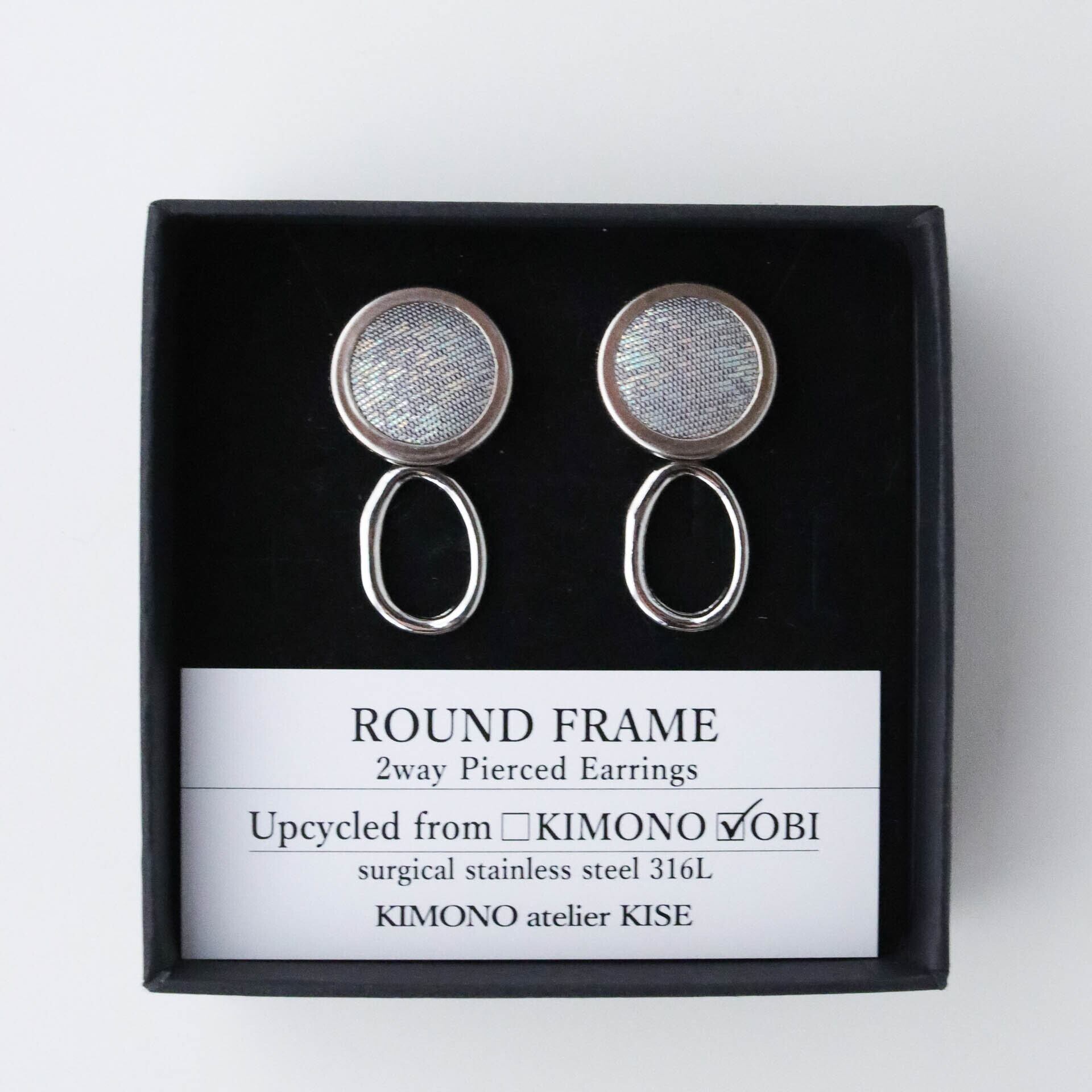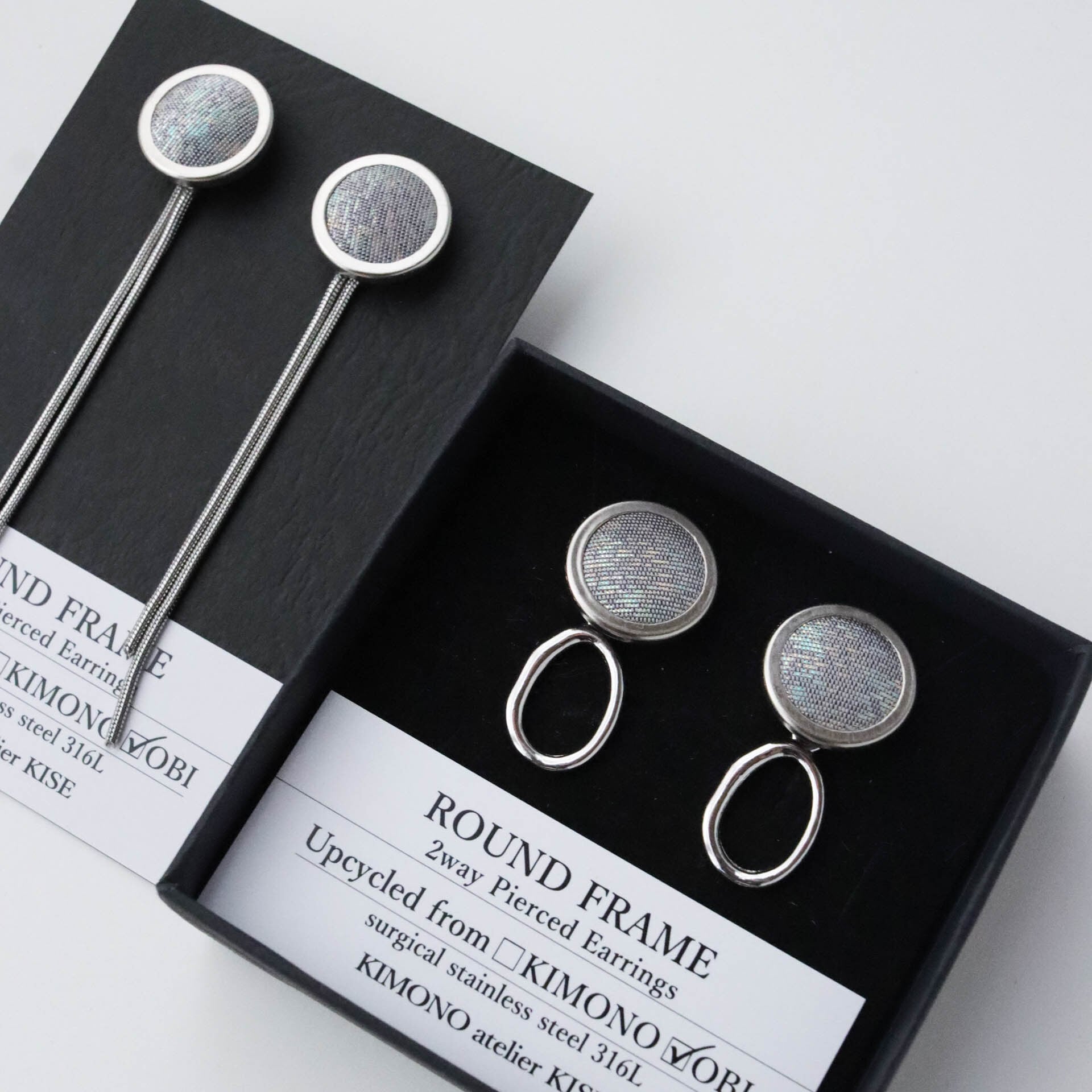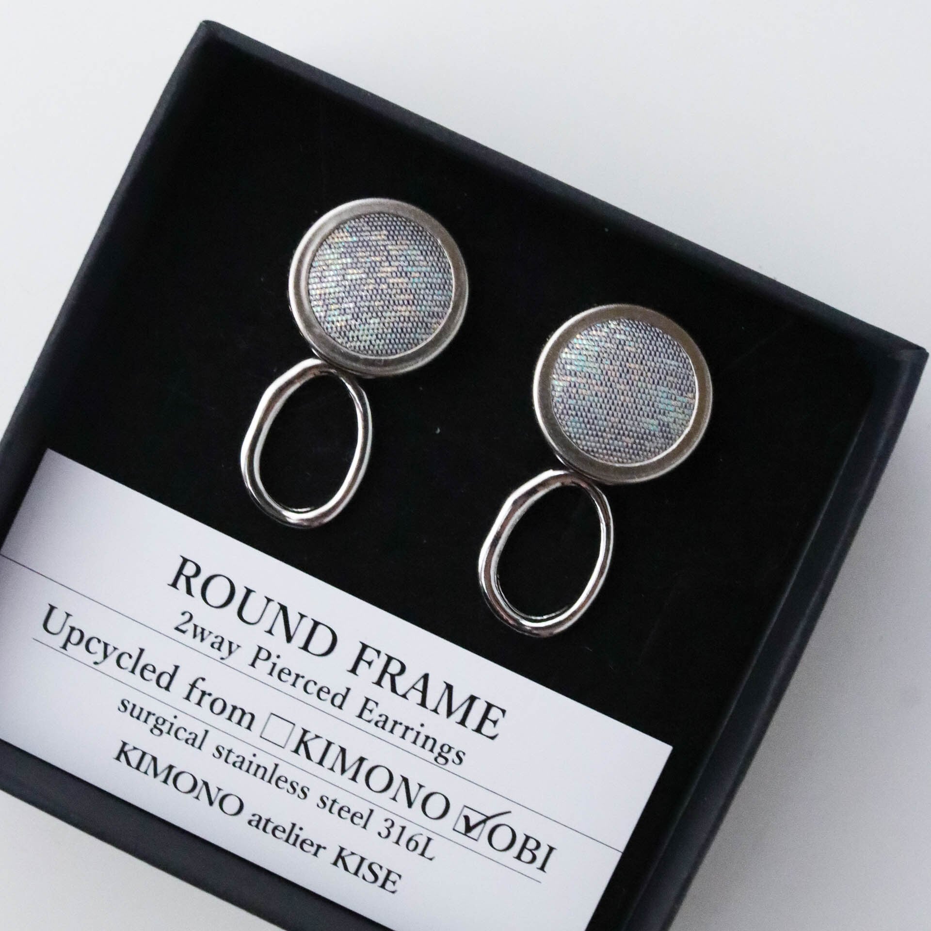 Round Frame 2way Pierced Earrings/グレーパープル /帯ピアス
