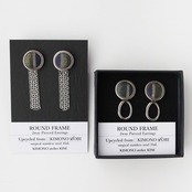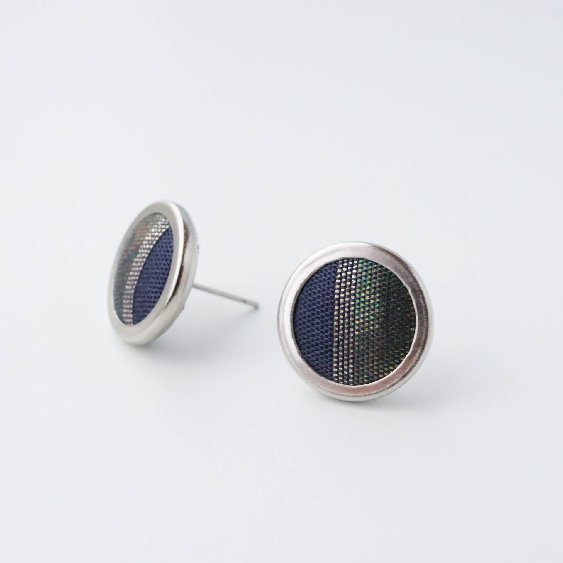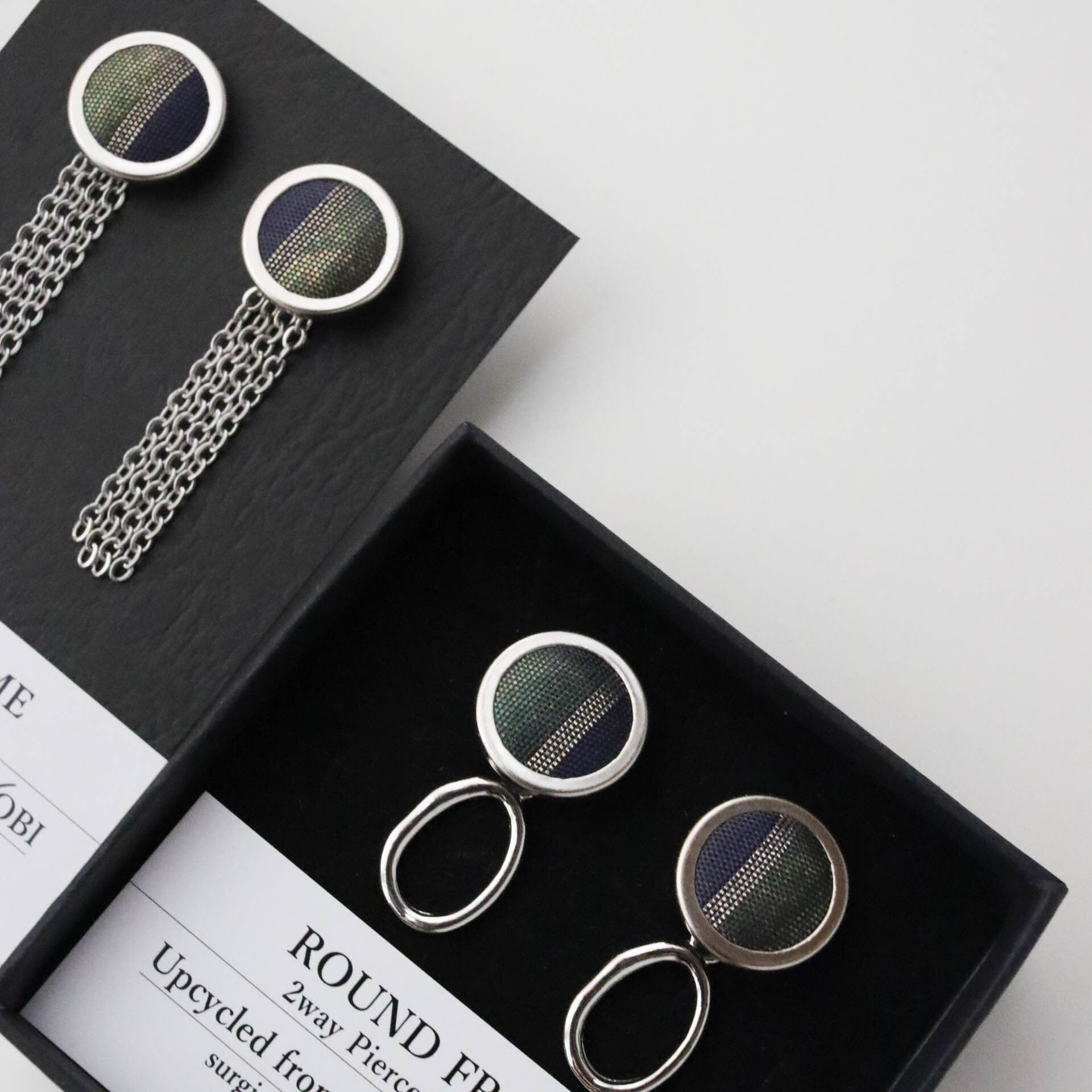 Round Frame 2way Pierced Earrings/グリーンストライプ /帯ピアス