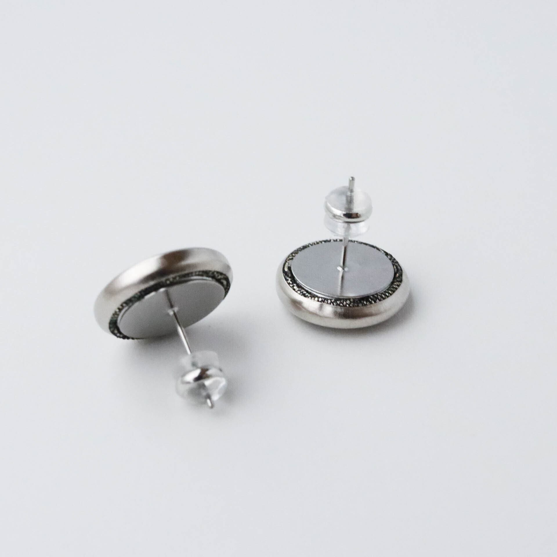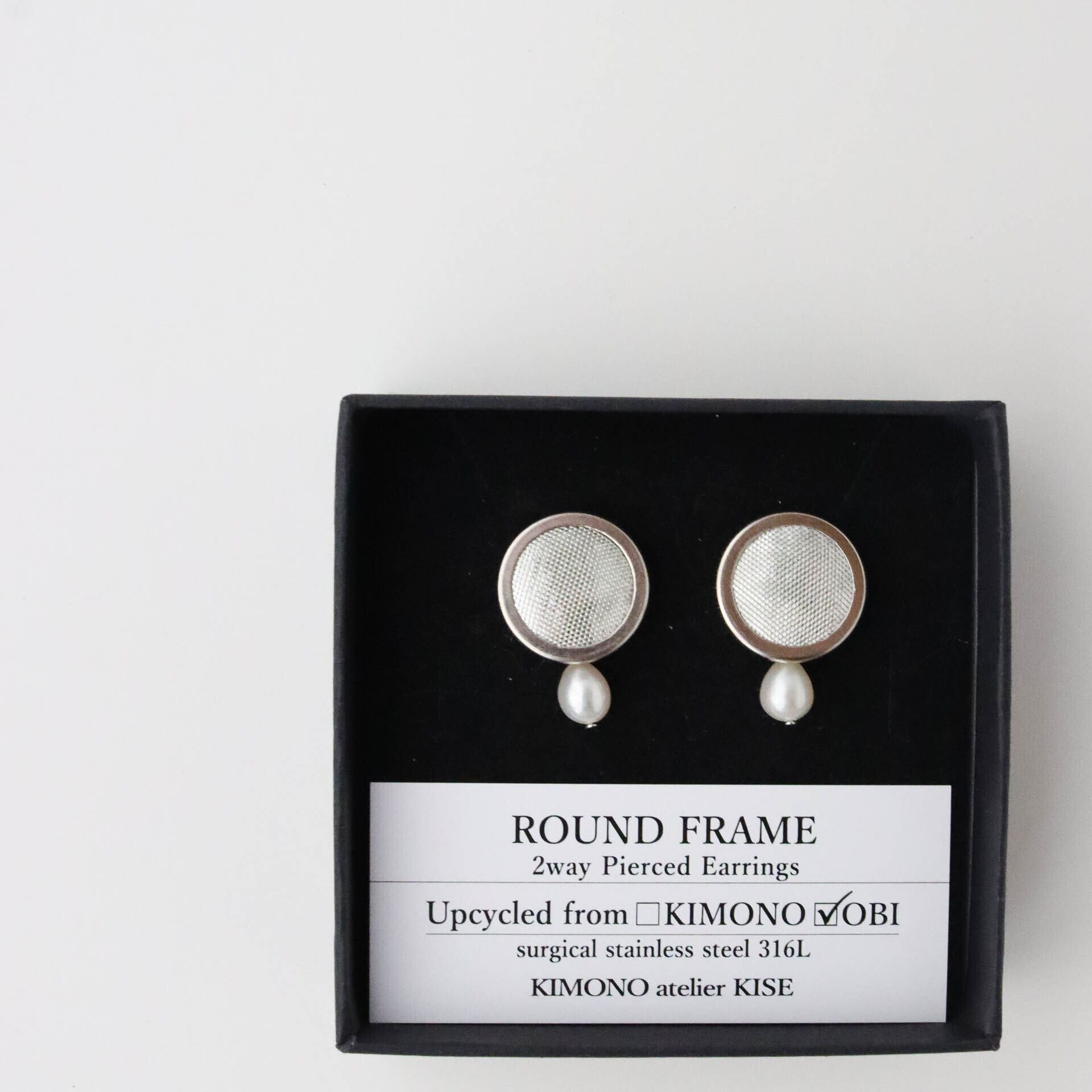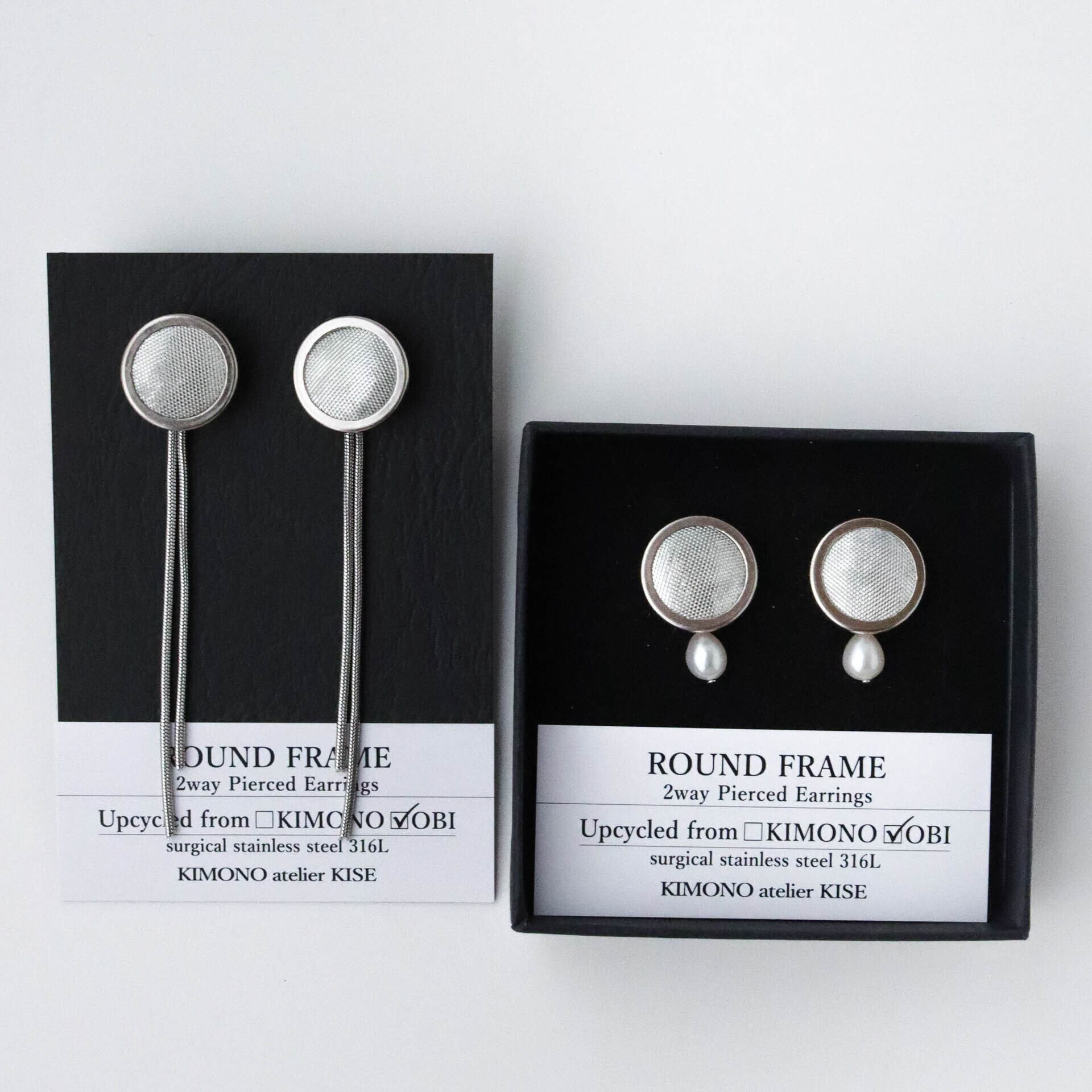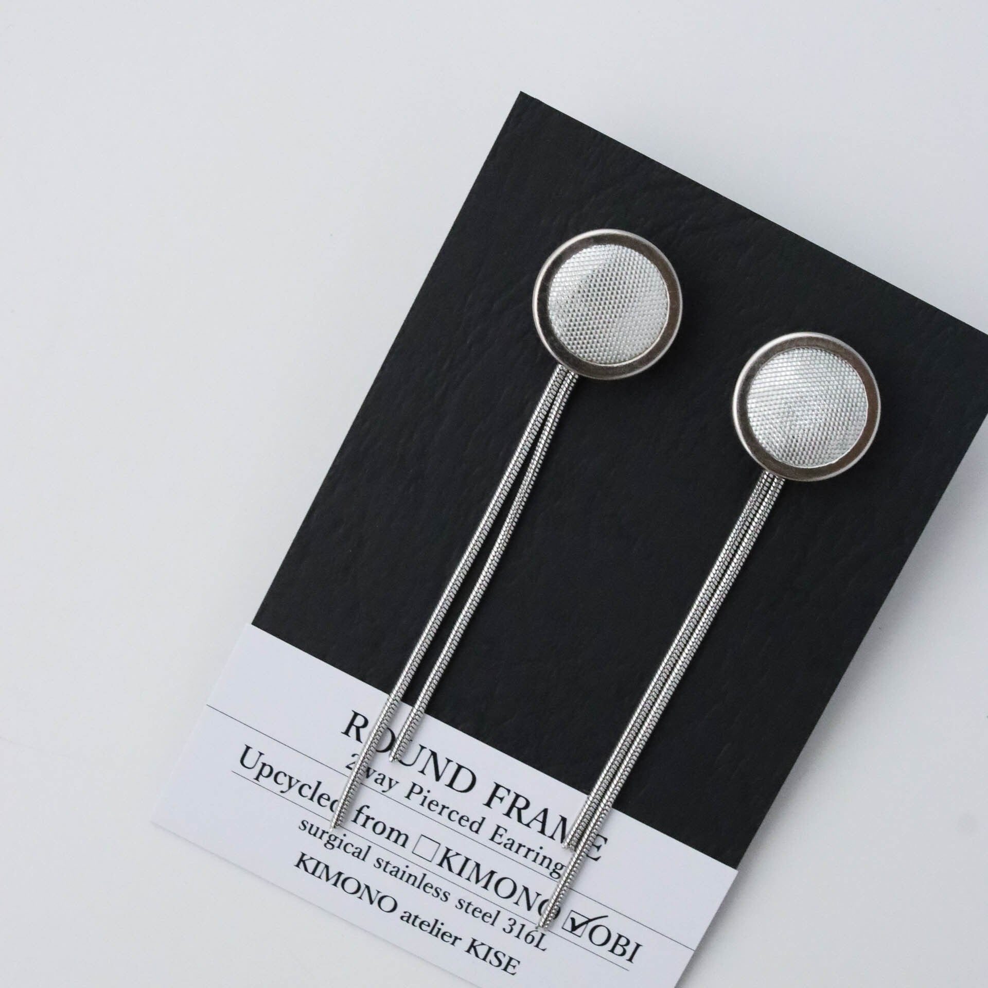Round Frame 2way Pierced Earrings/シルバーマーブル/帯ピアス