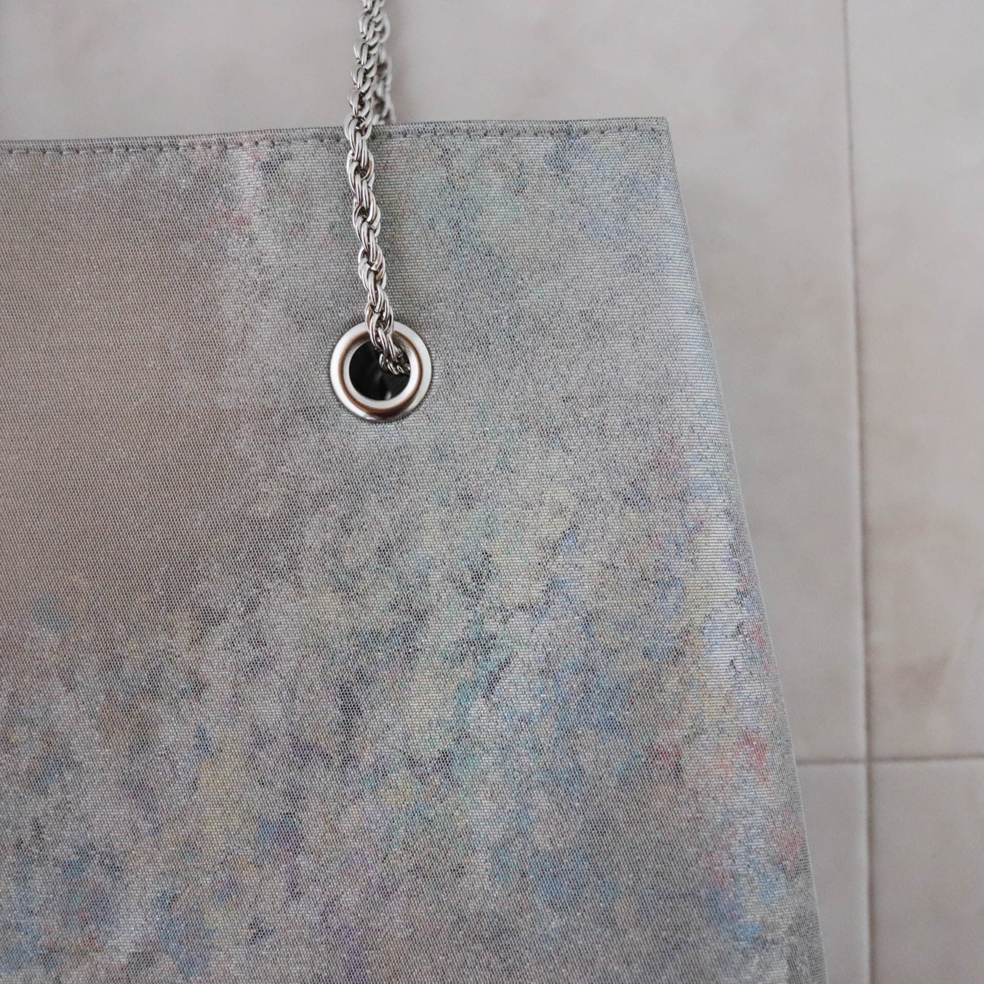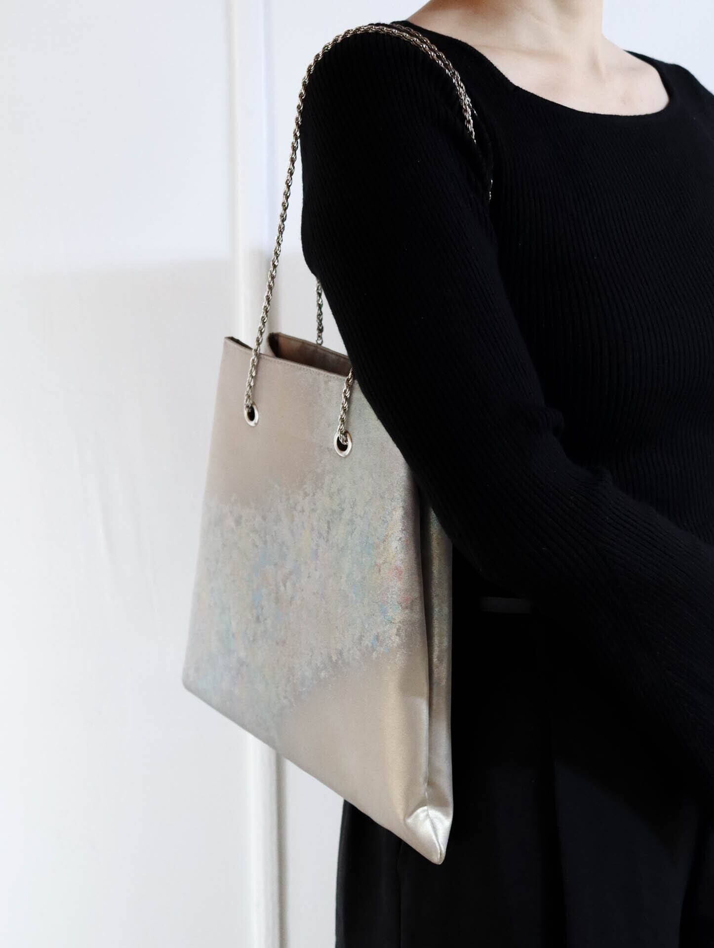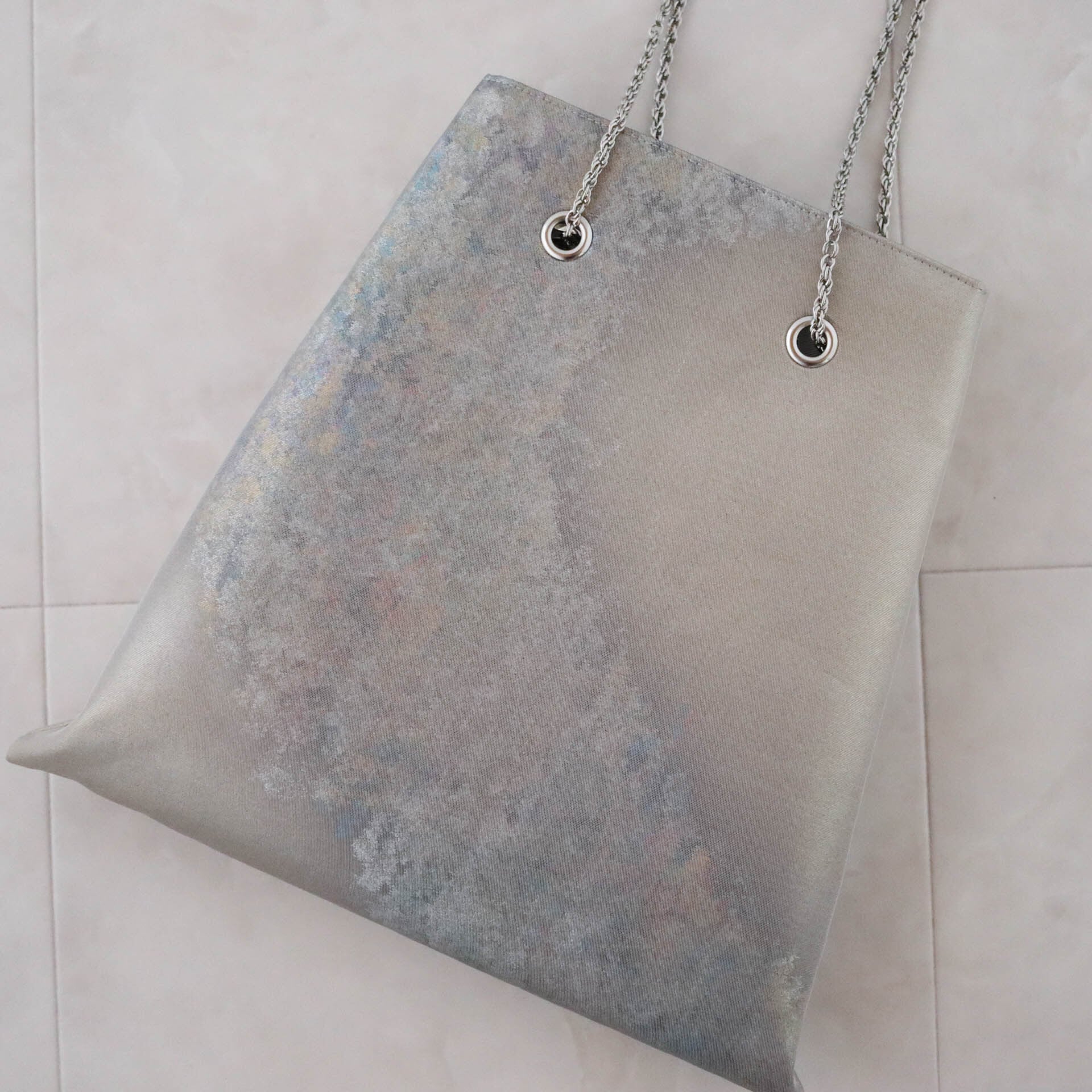 落ち着いたグレーシルバー地に流れるプリズムカラー