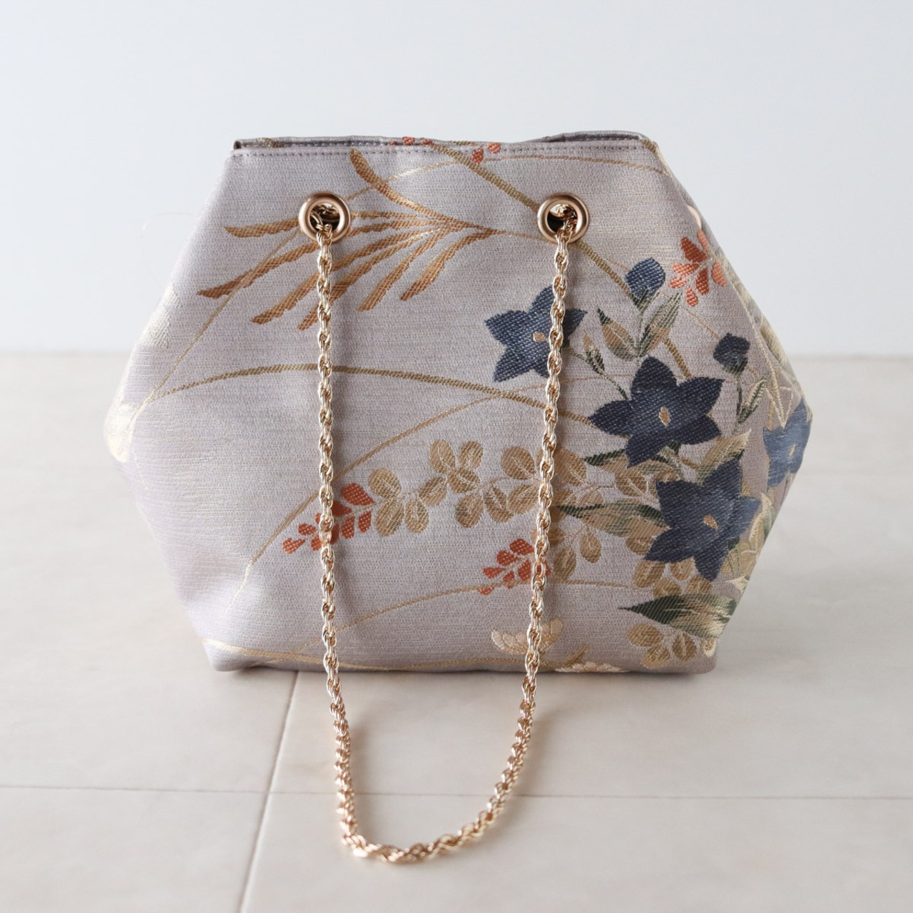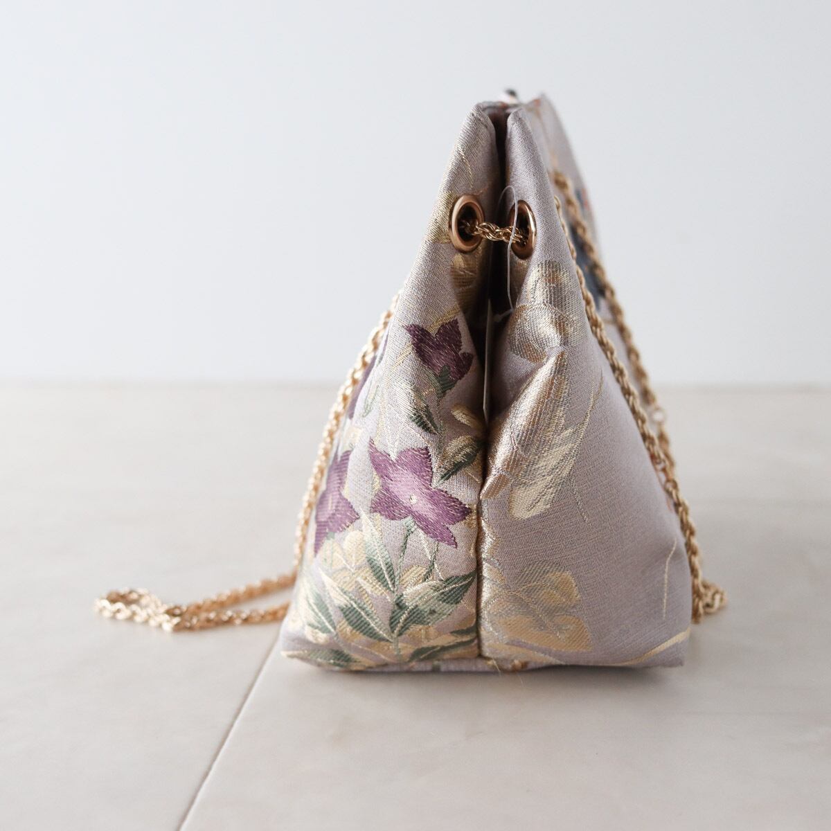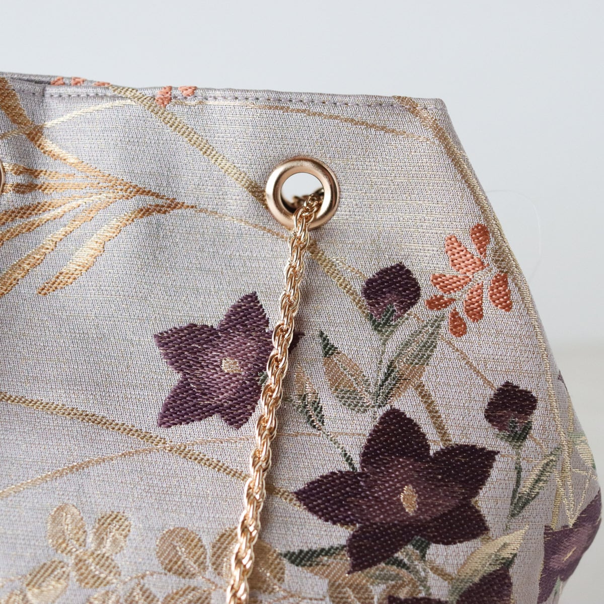 Obi Drawstring Bag Cube /くすみパープルに桔梗 / Muted purple with bellflowers