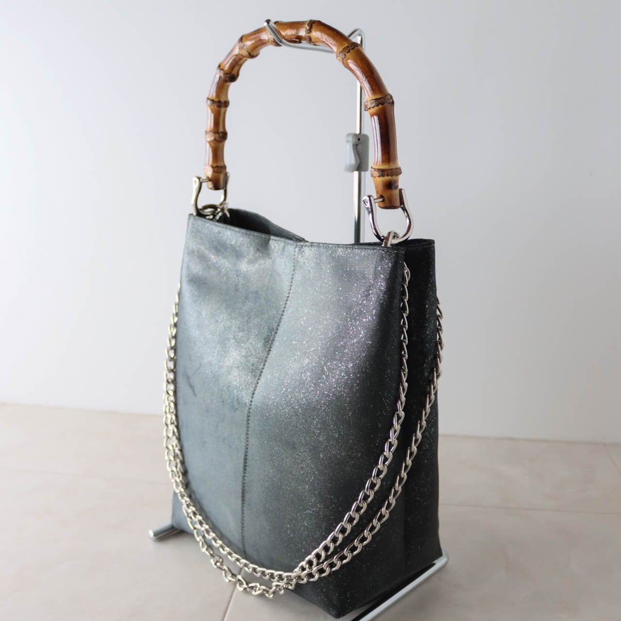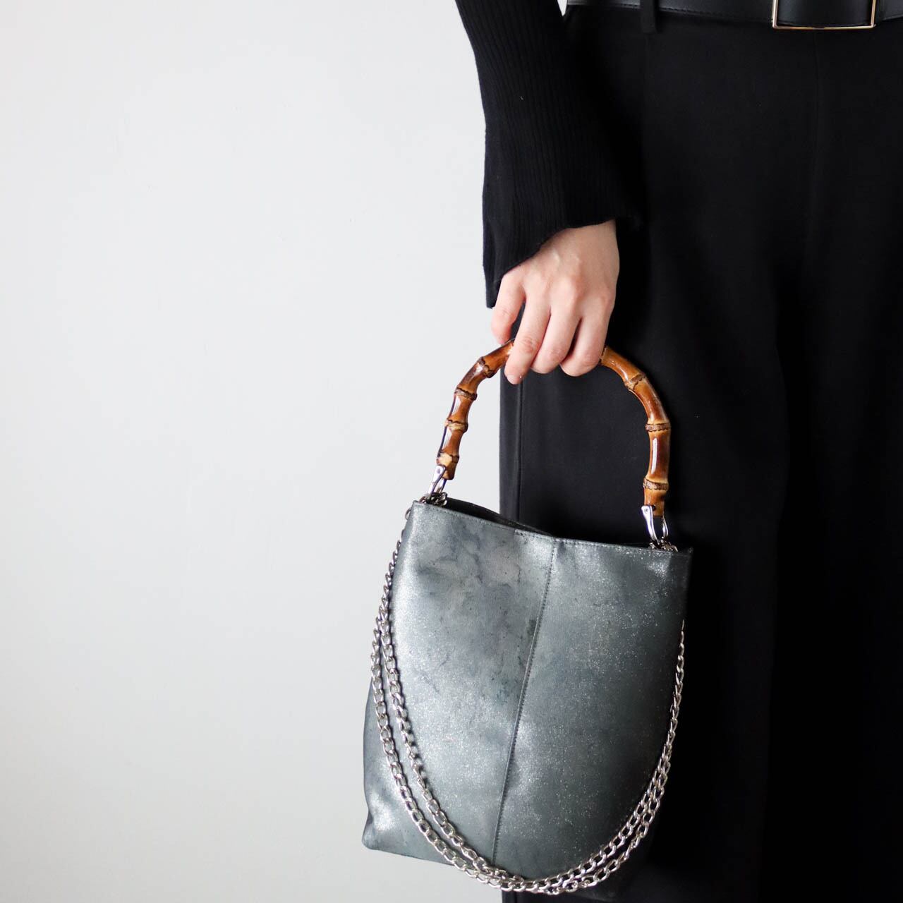バンブーハンドルを外せばシンプルなチェーンバッグとして