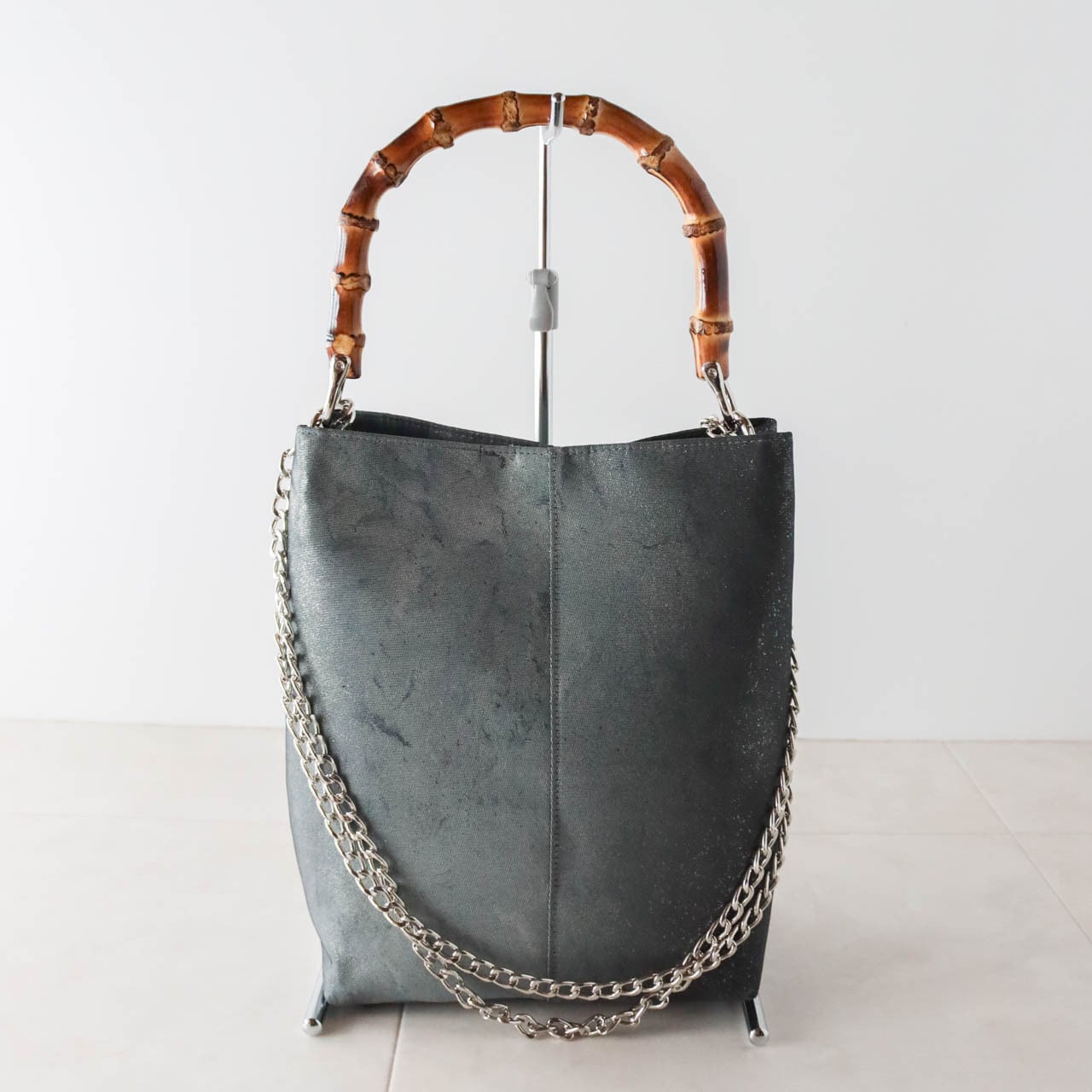 Bamboo Handle Bag 17/グリッターグレーグラデーション/ 帯リメイク