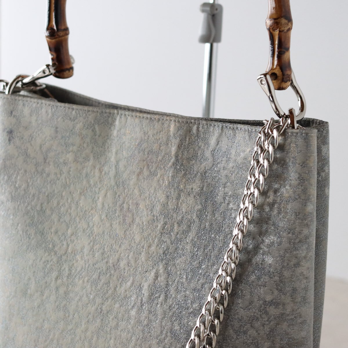 バンブーハンドルを外せばシンプルなチェーンバッグとして