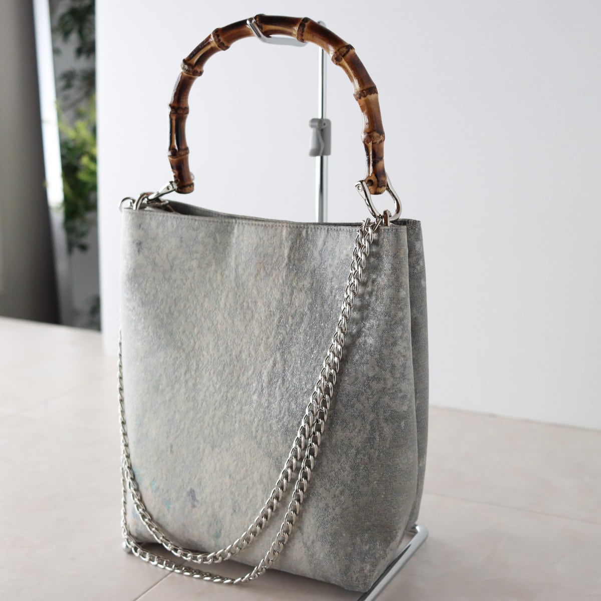 チェーンを外せば、和装にもピッタリなバンブーバッグになります