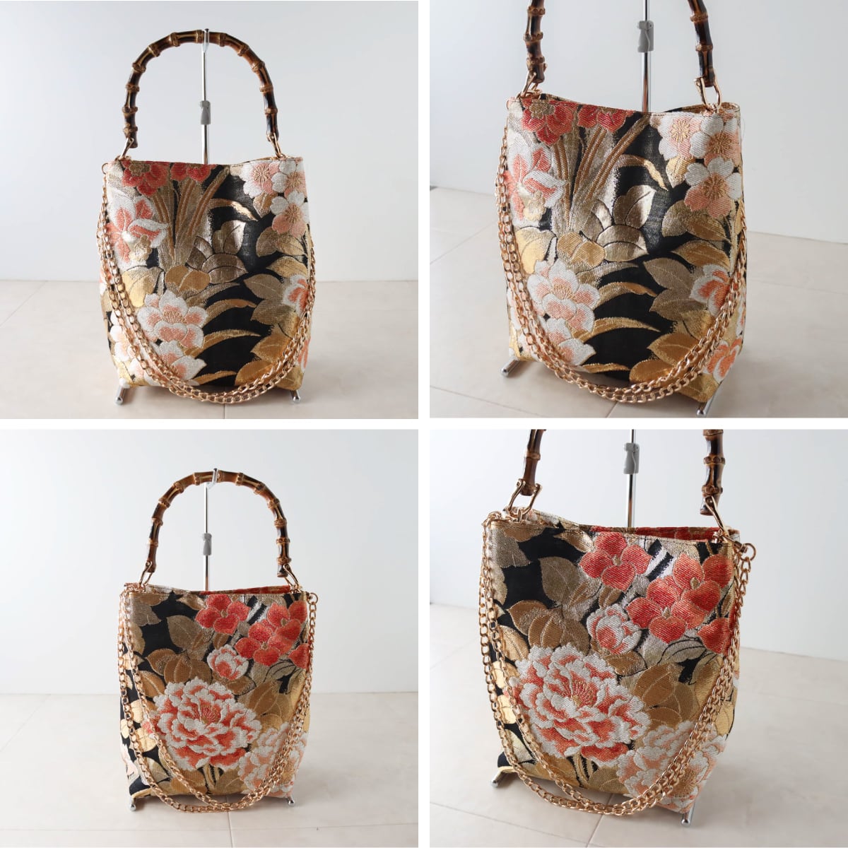 チェーンを外せば、和装にもピッタリなバンブーバッグになります