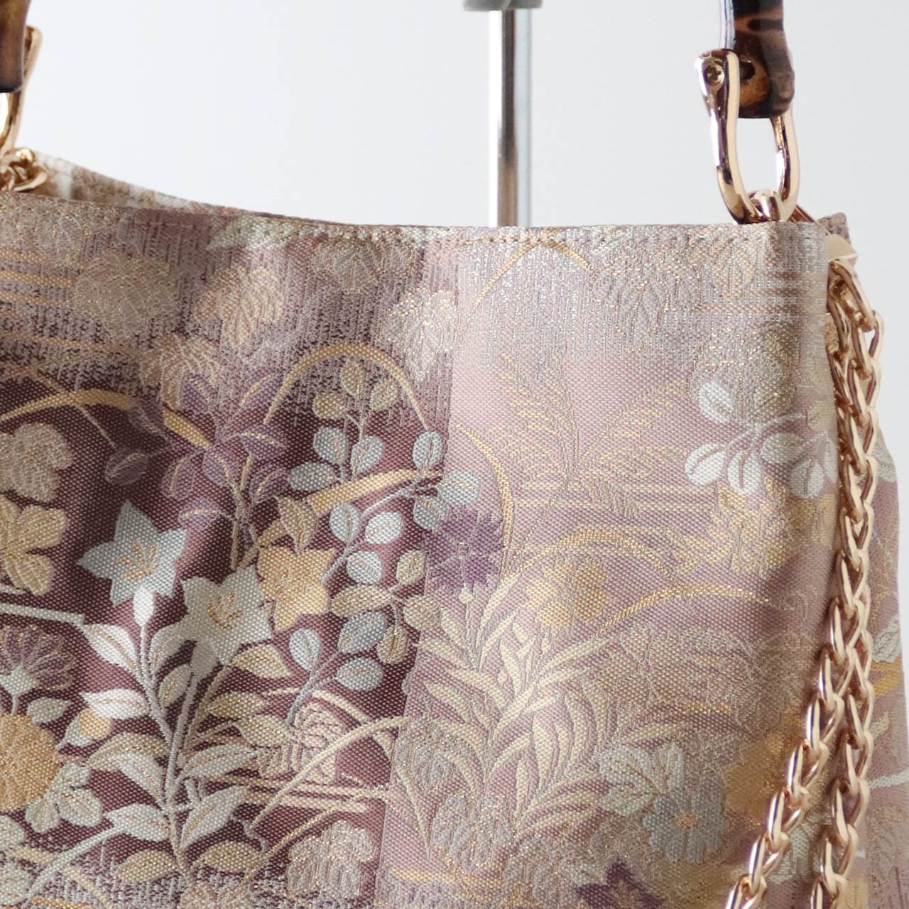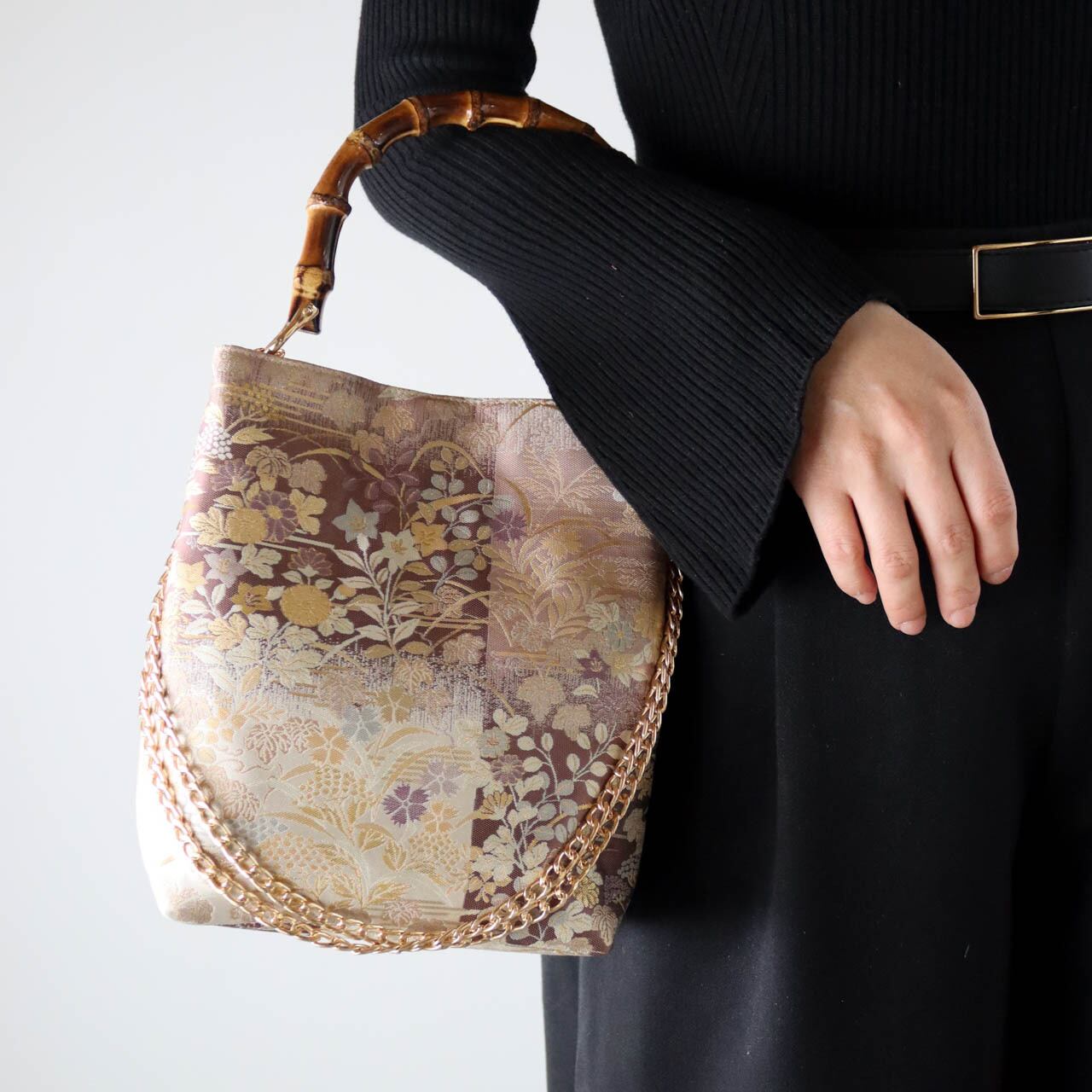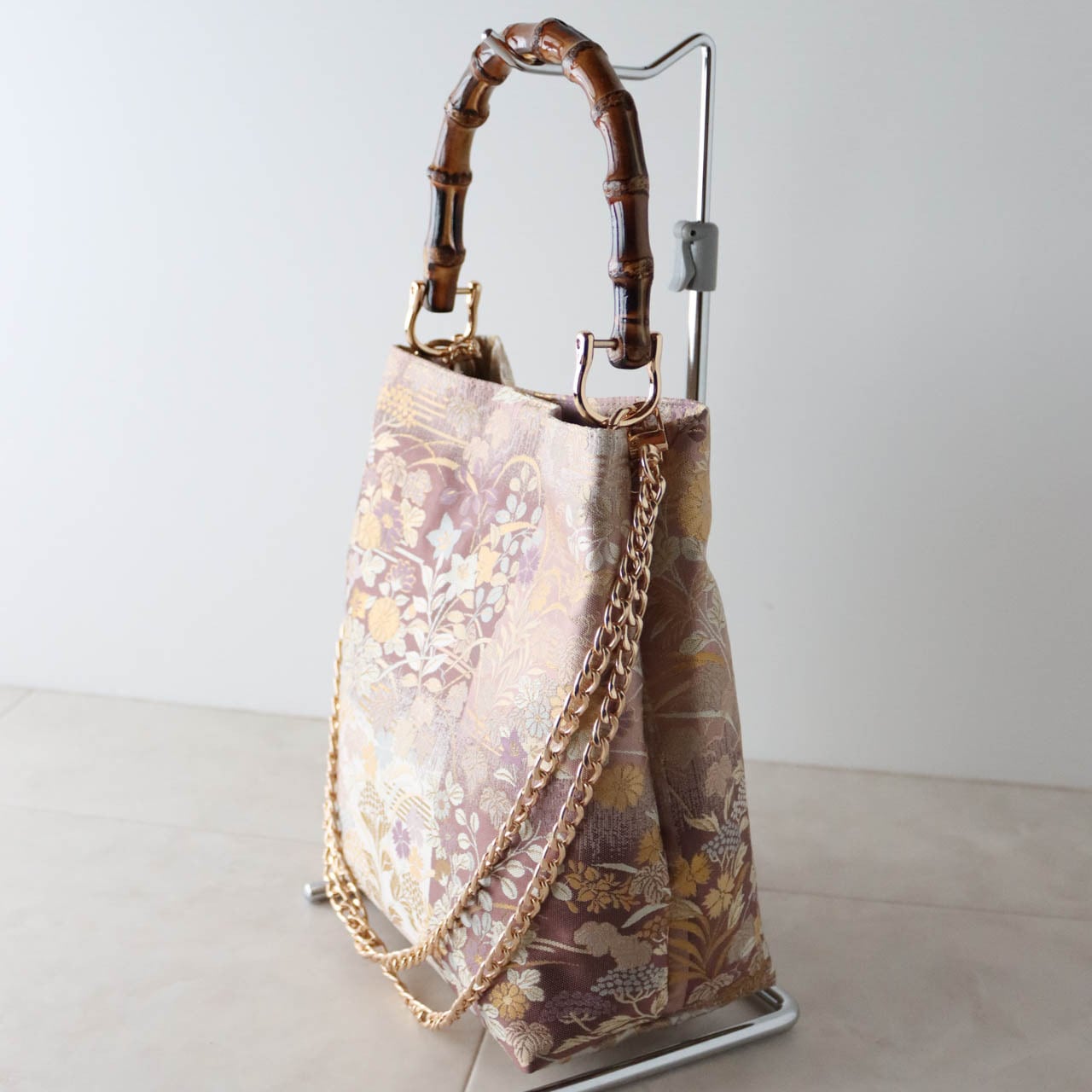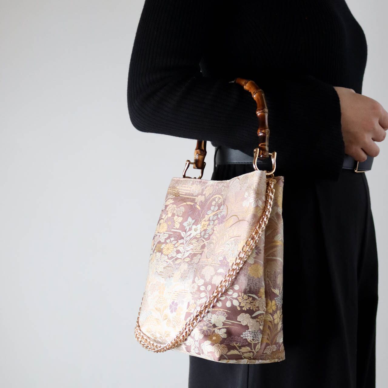 チェーンを外せば、和装にもピッタリなバンブーバッグになります