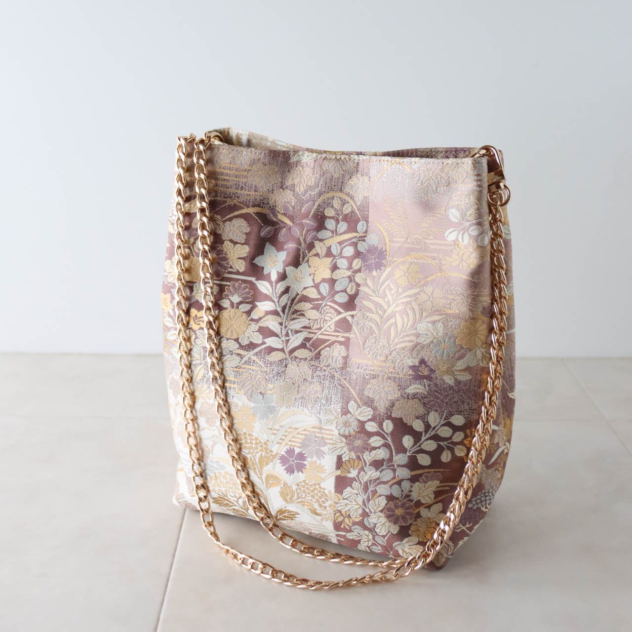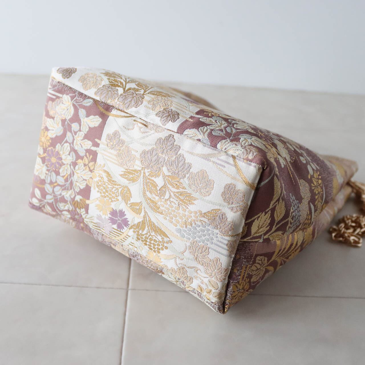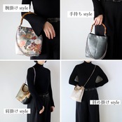 横幅17cmタイプ、袋帯をリメイクしたワンハンドルバンブーバッグ
