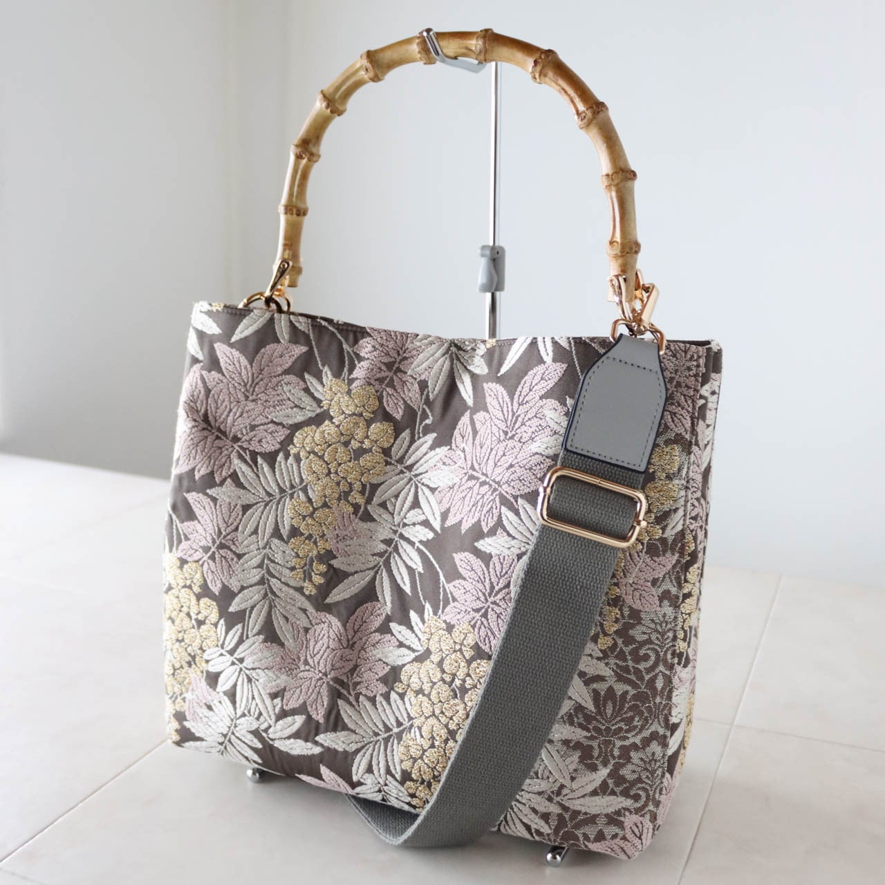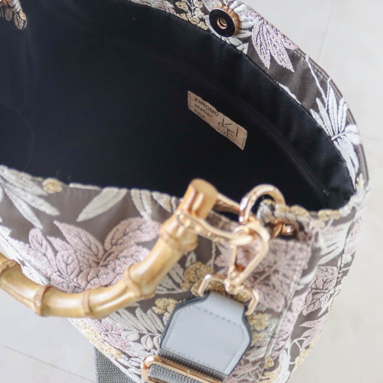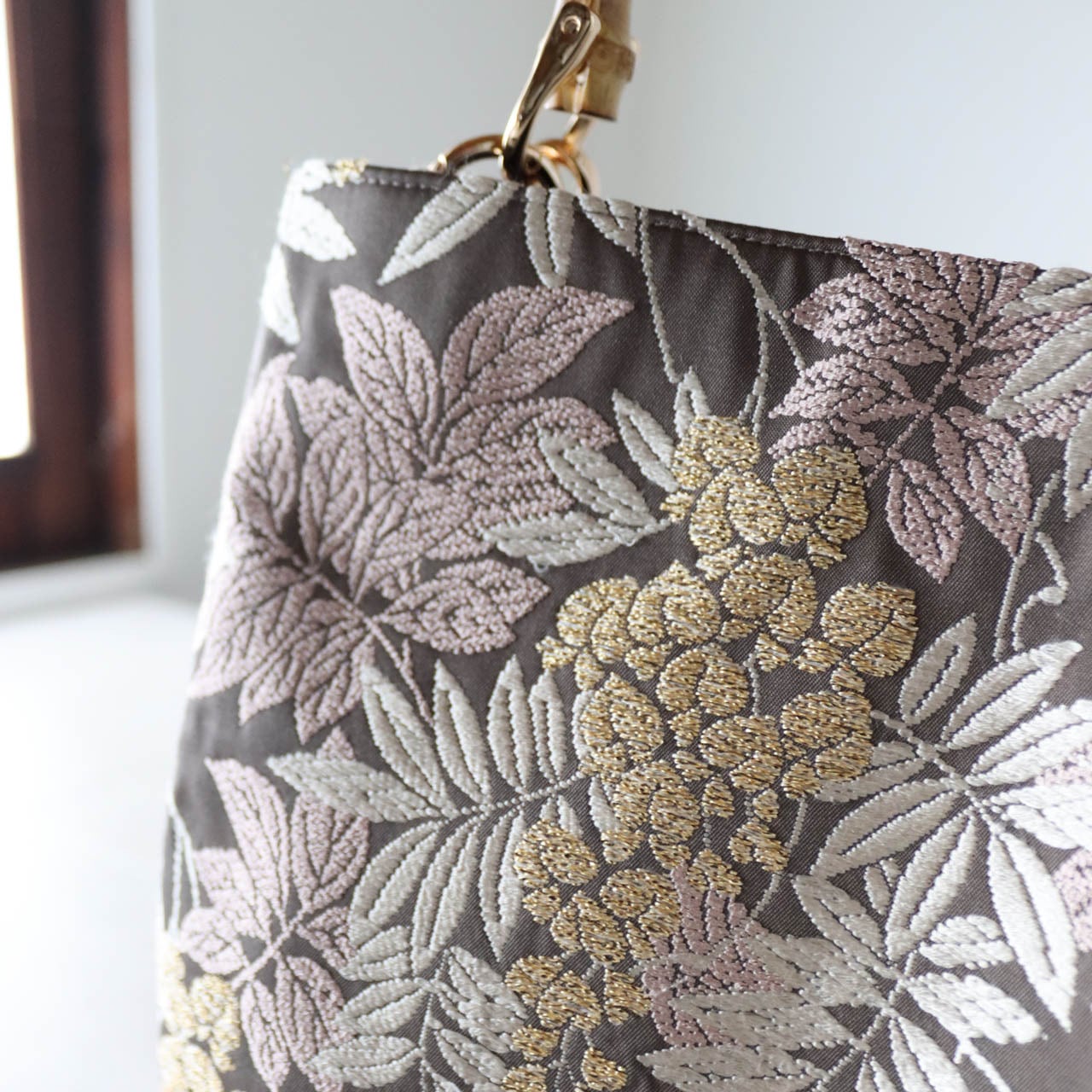 Bamboo Handle Bag 26/草木染に唐織草花/ 帯リメイク