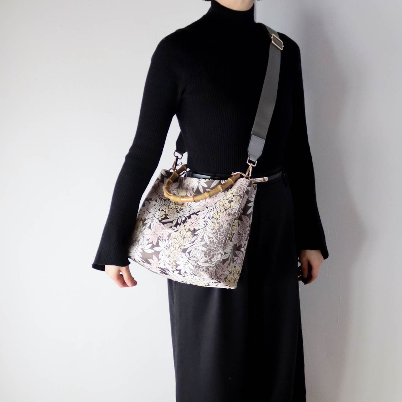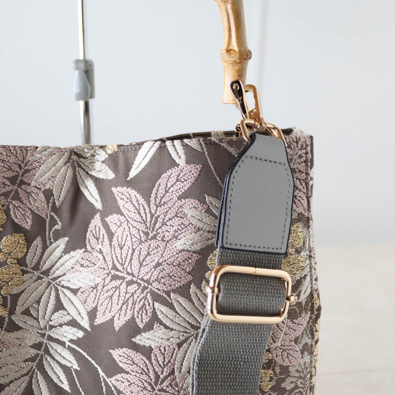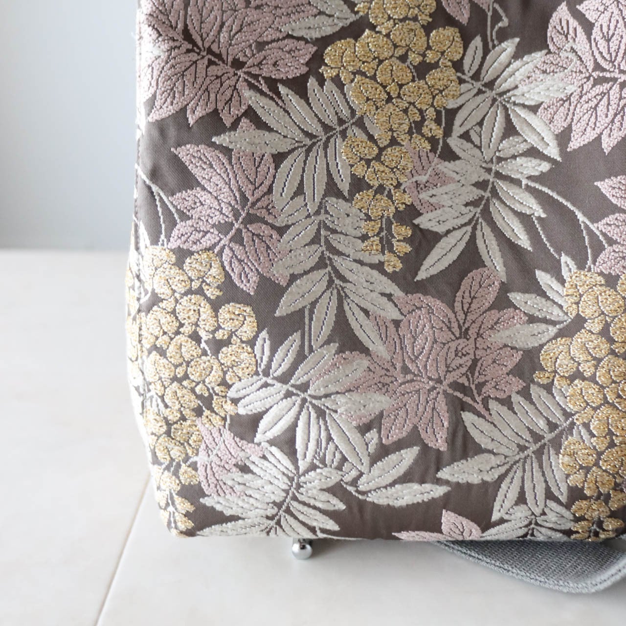 Bamboo Handle Bag 26/草木染に唐織草花/ 帯リメイク