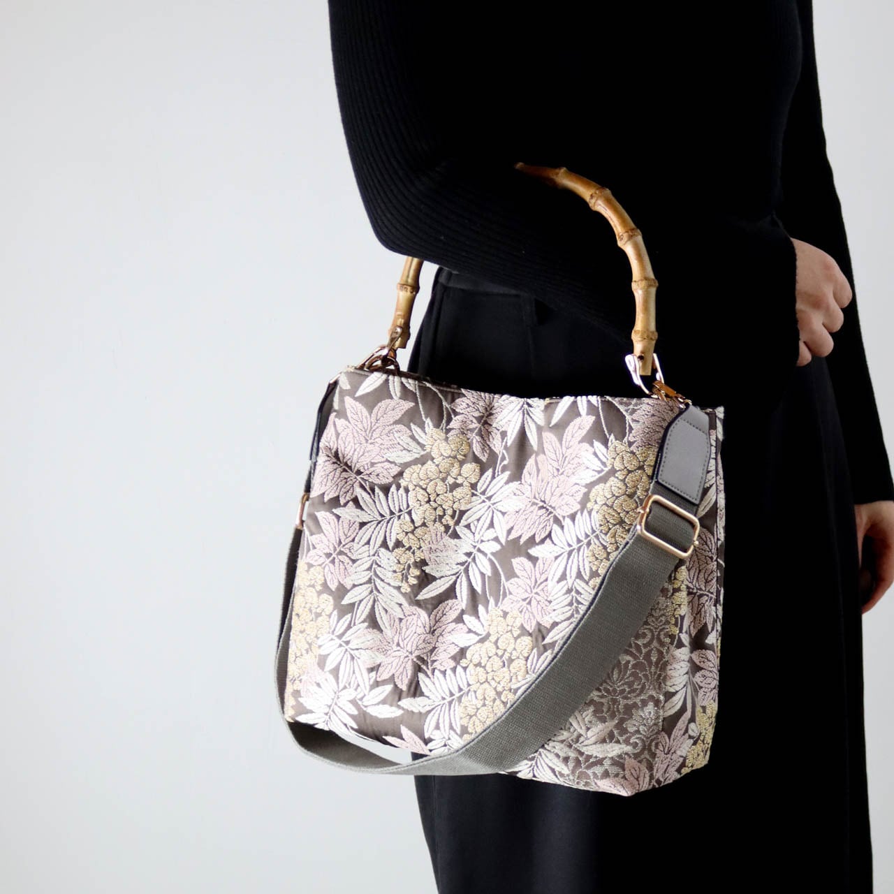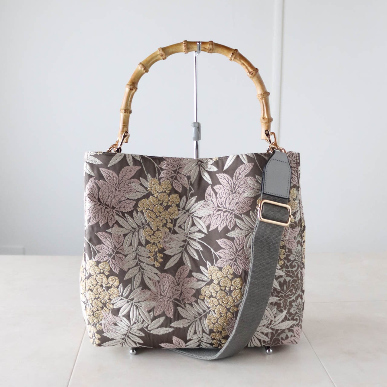 横幅26cmタイプ、袋帯をリメイクしたワンハンドルバンブーバッグ