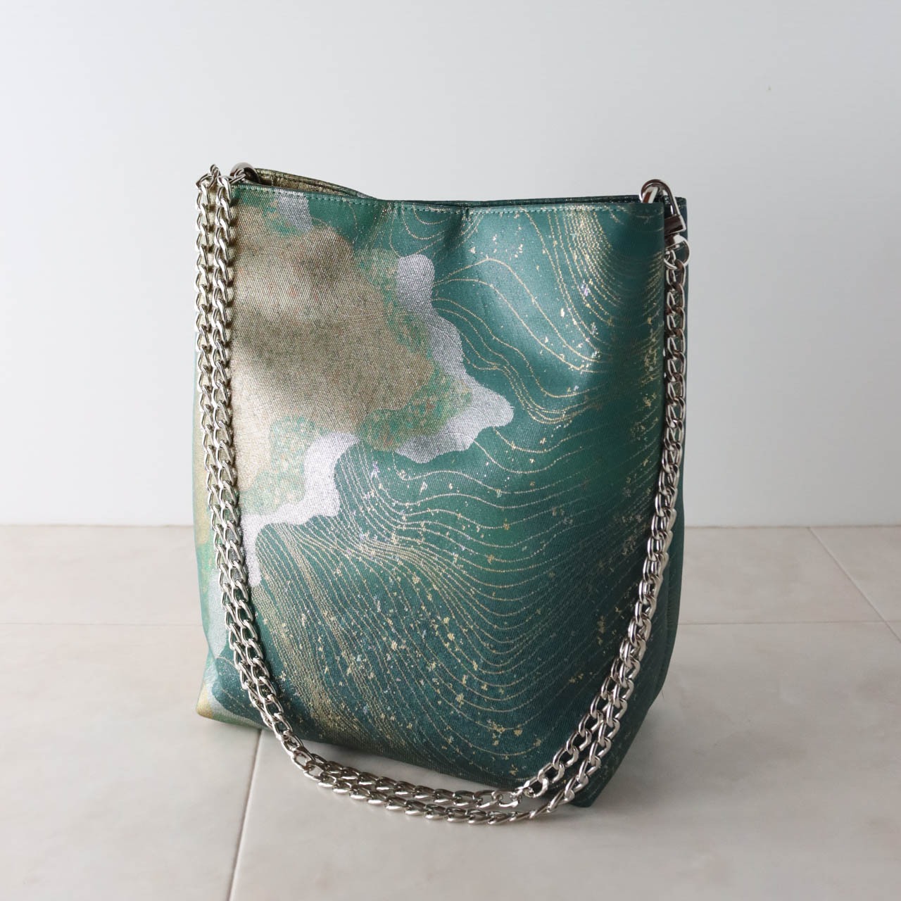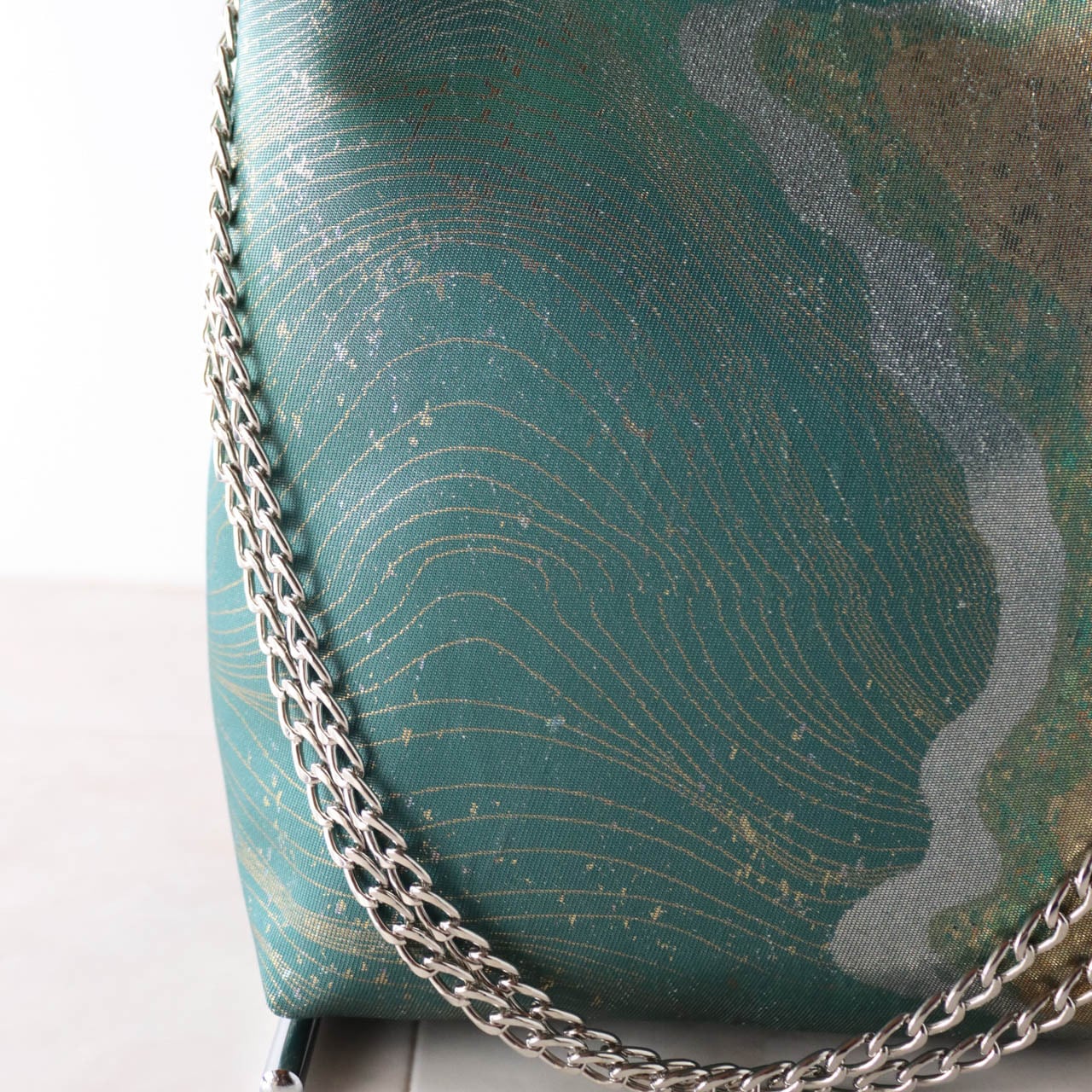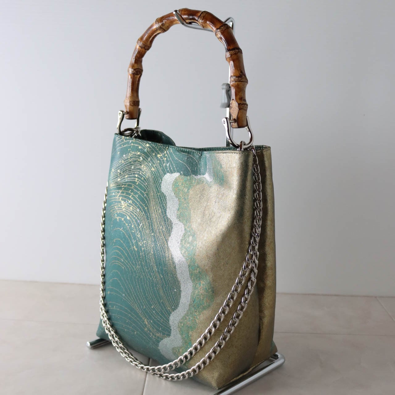 Bamboo Handle Bag 17/グリーンに流水道長/ 帯リメイク