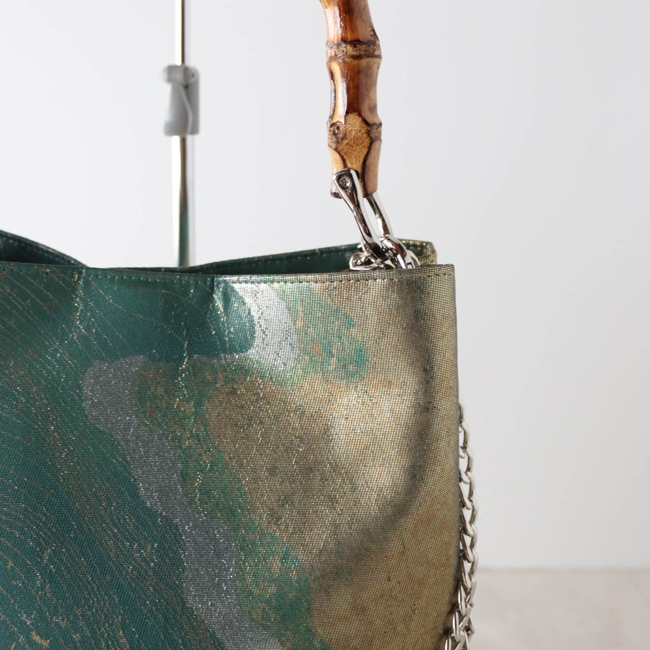 チェーンを外せば、和装にもピッタリなバンブーバッグになります