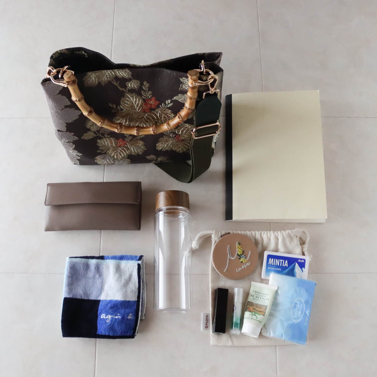 500mlのペットボトル、長財布、ハンカチや小物を入れても余裕がございます。