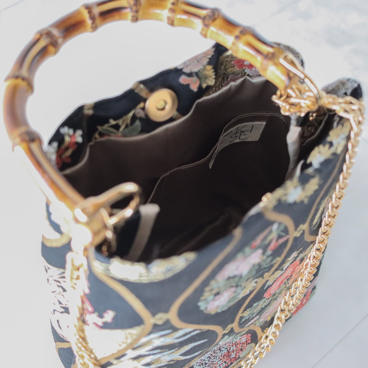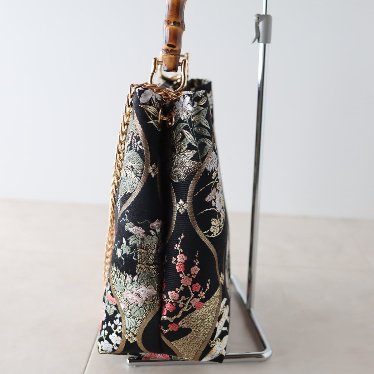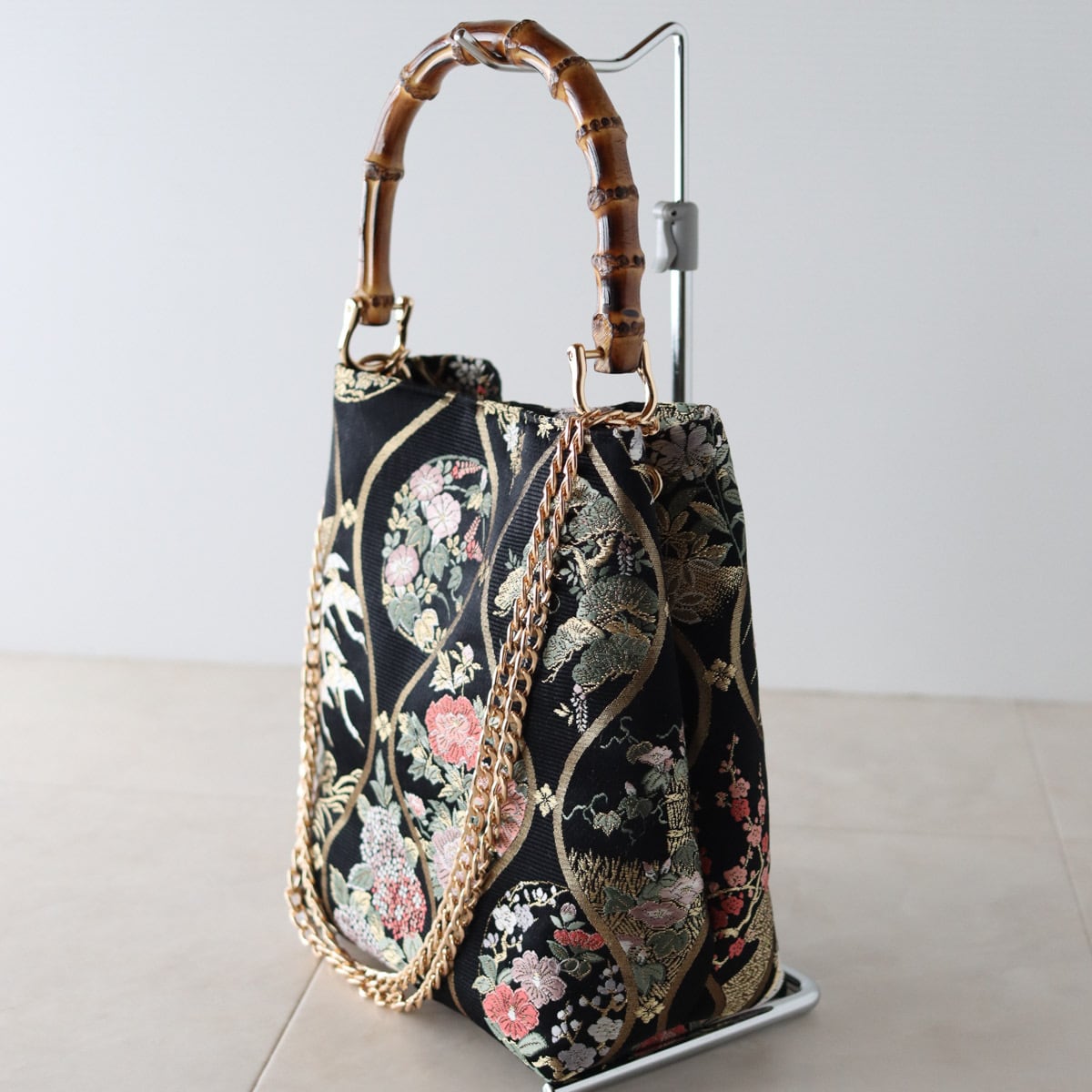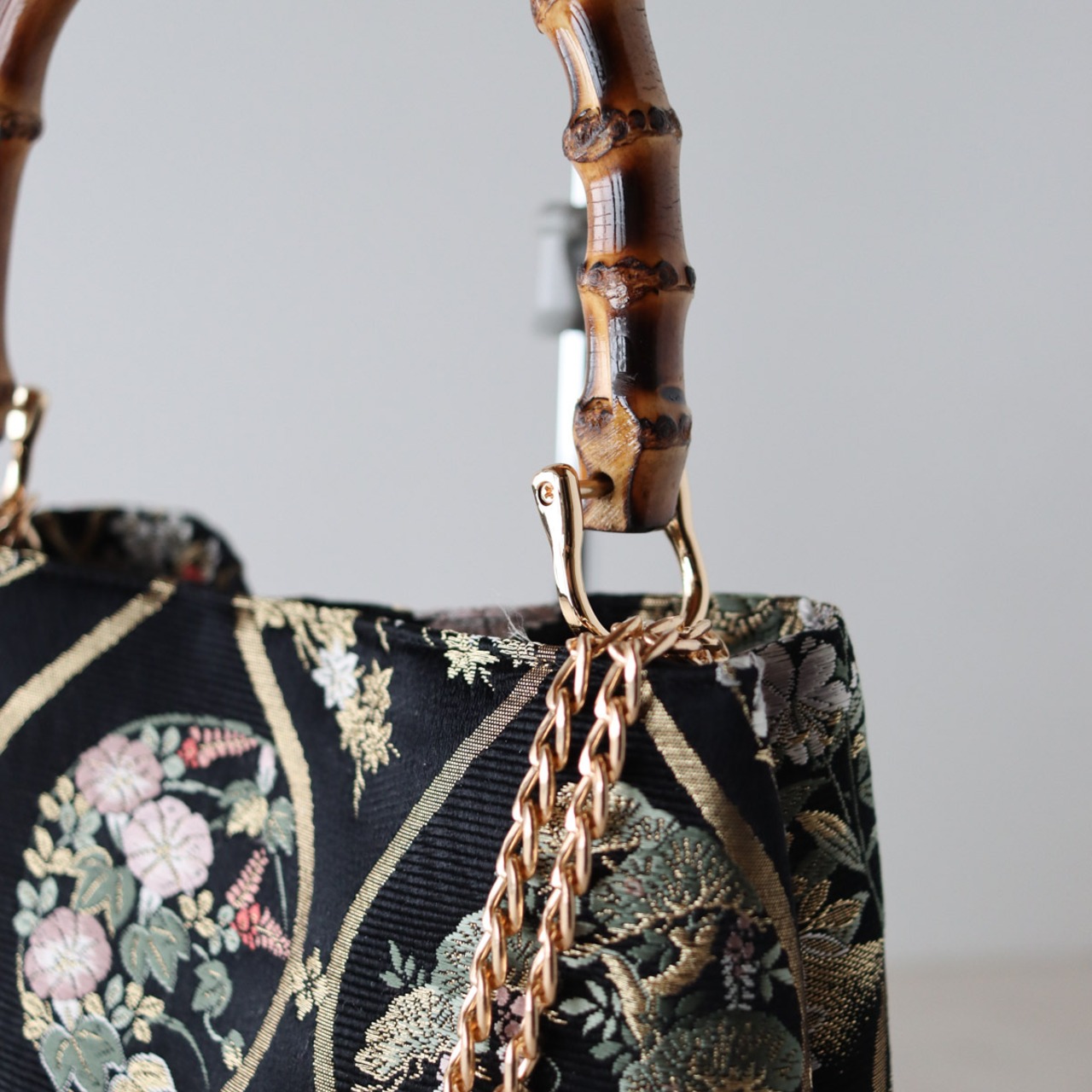 チェーンを外せば、和装にもピッタリなバンブーバッグになります