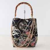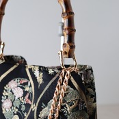 Bamboo Handle Bag 17//黒地に立涌に四季花/ 帯リメイクバッグ