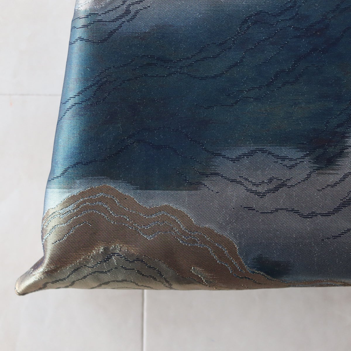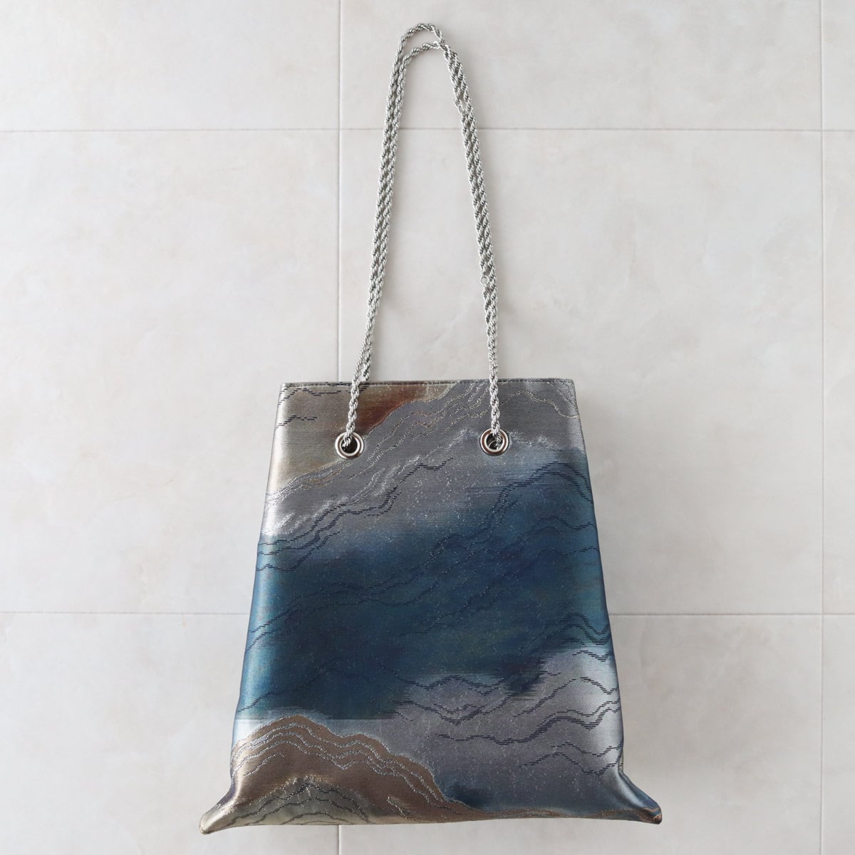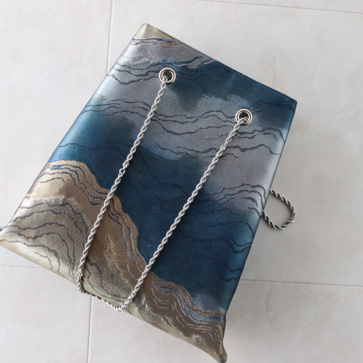 Obi Drawstring Bag Large/山並みゴールド&ネイビー/帯リメイクバッグ
