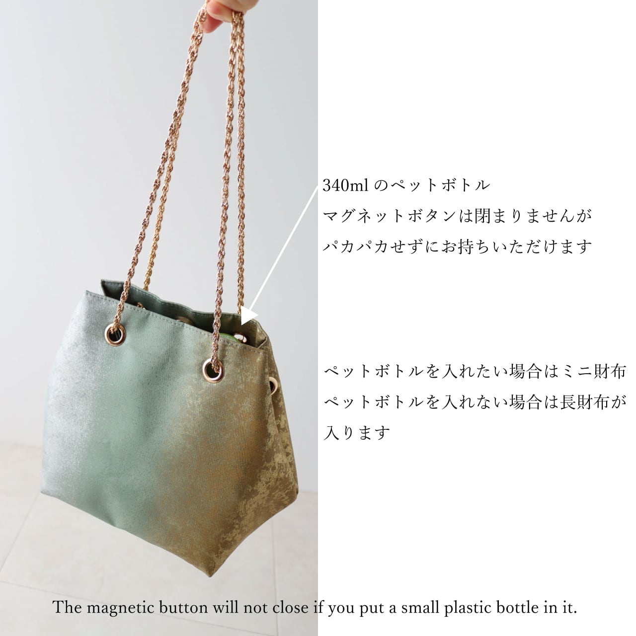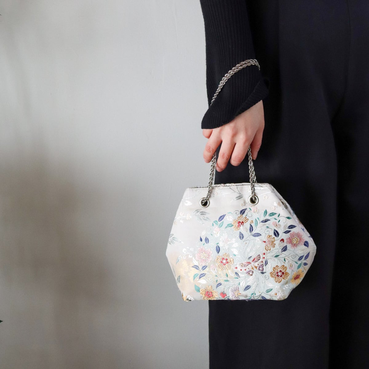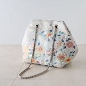 その上にお花や蝶の細かな模様が入った可憐な雰囲気のバッグです