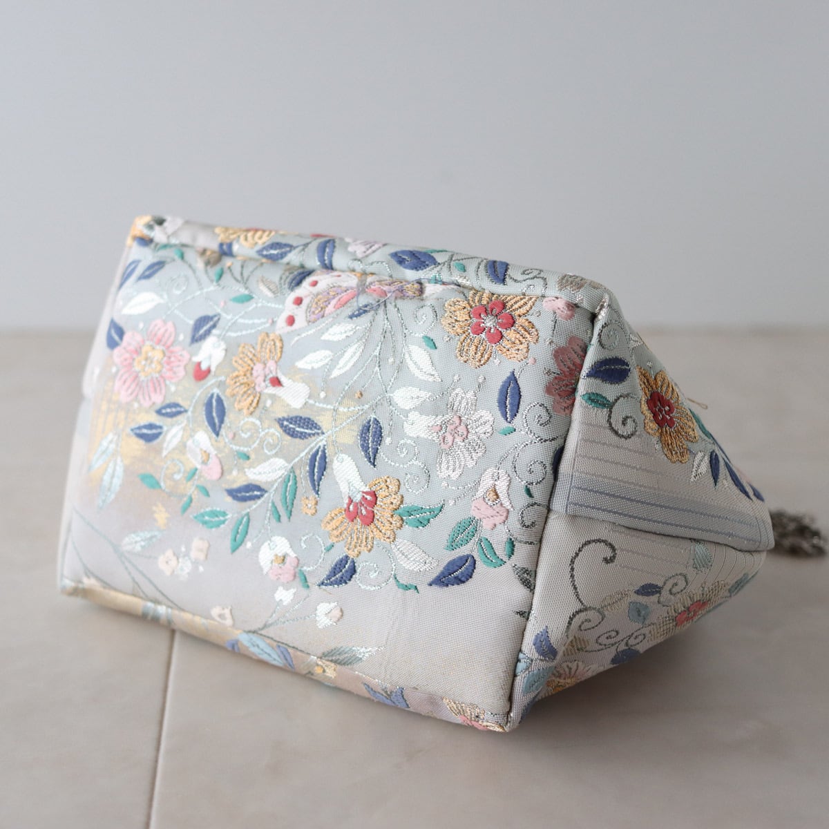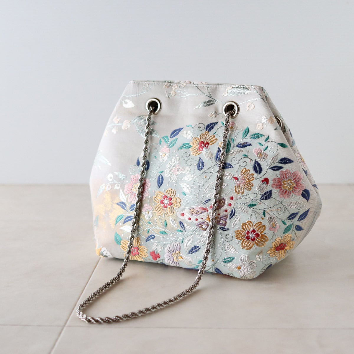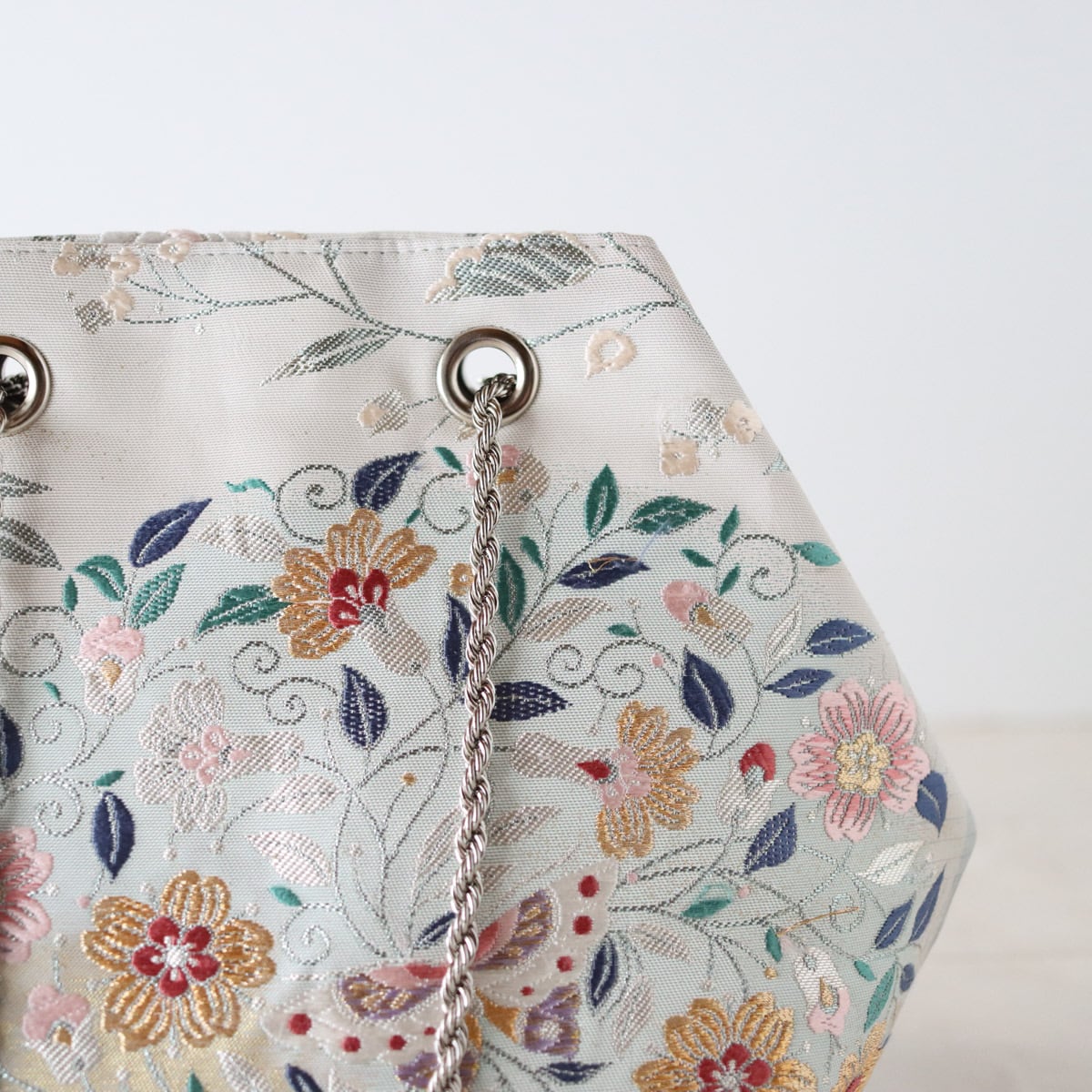 Obi Drawstring Bag Cube /花丸紋に蝶/帯リメイク