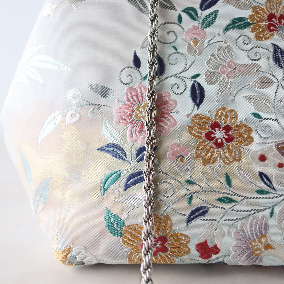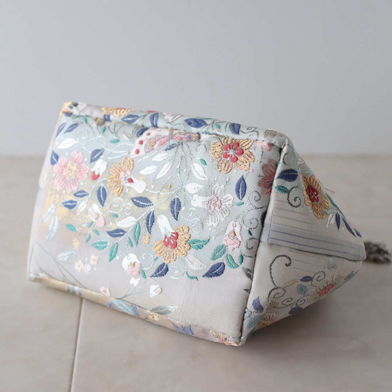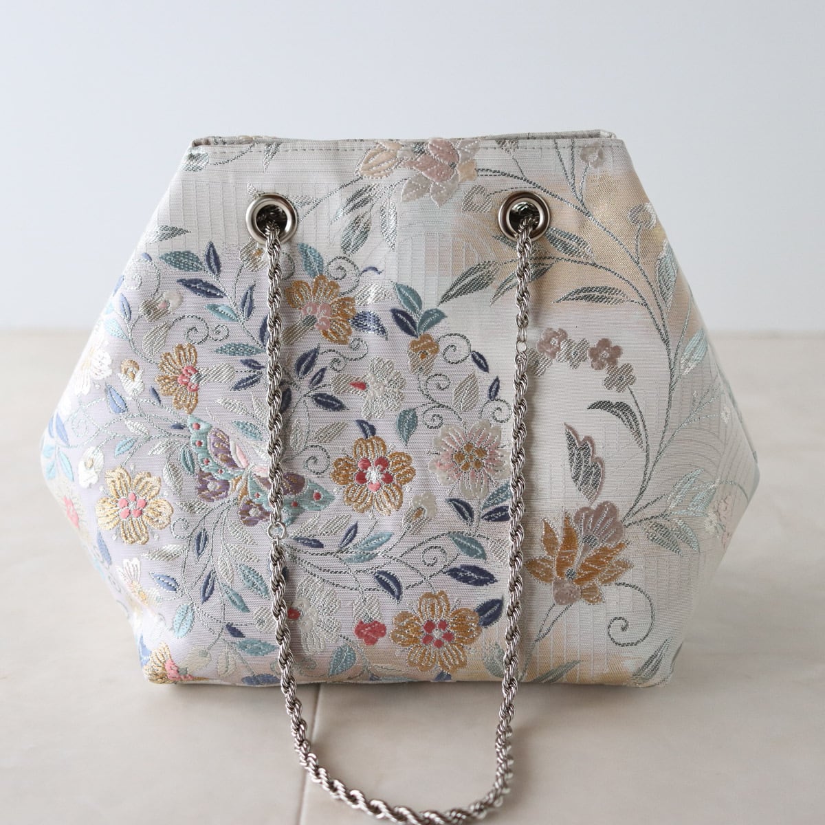 Obi Drawstring Bag Cube /花丸紋に蝶/帯リメイク