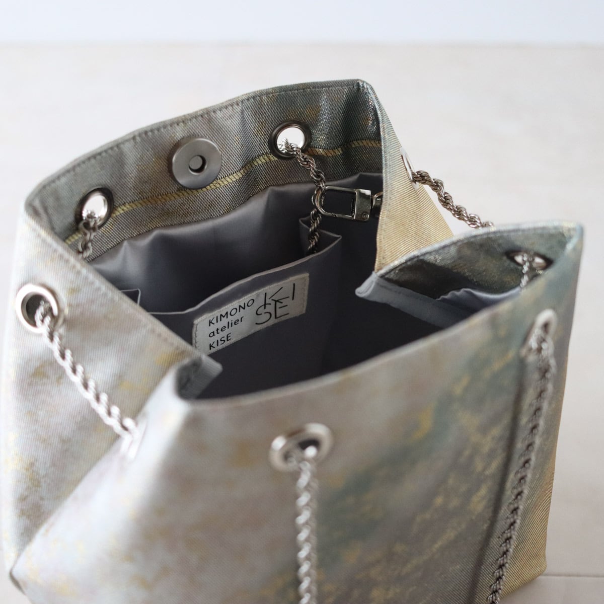 引箔袋帯からリメイクしたチェーンバッグです