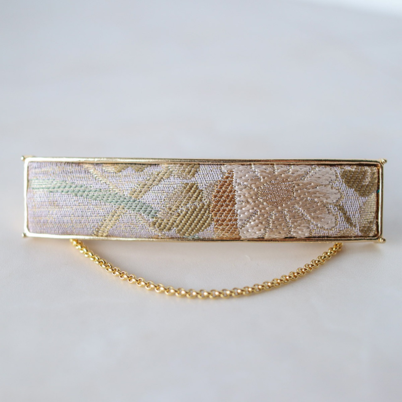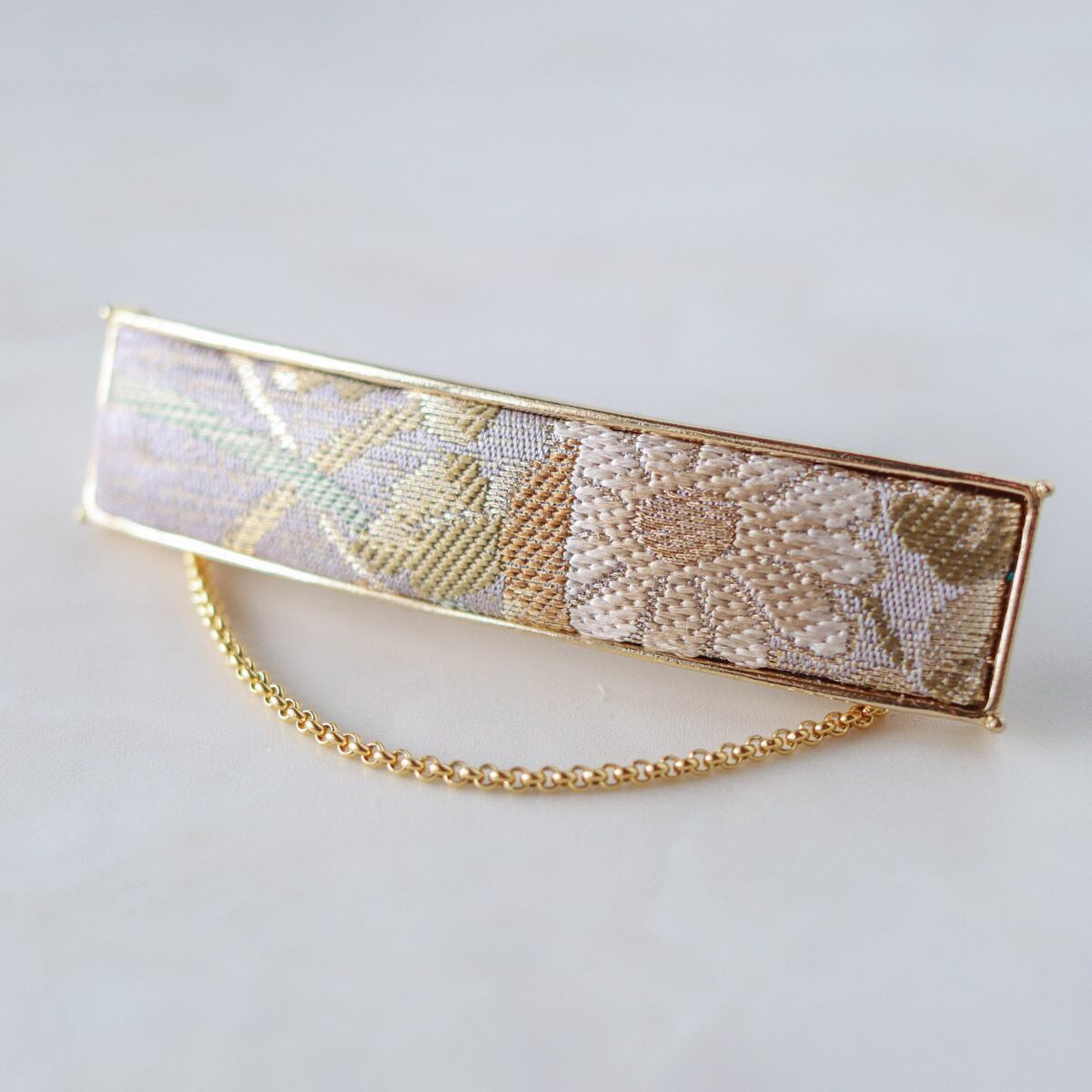 小さいながらも絹の艶やかさ帯の豪華さが伝わってくる上品なバレッタです。
