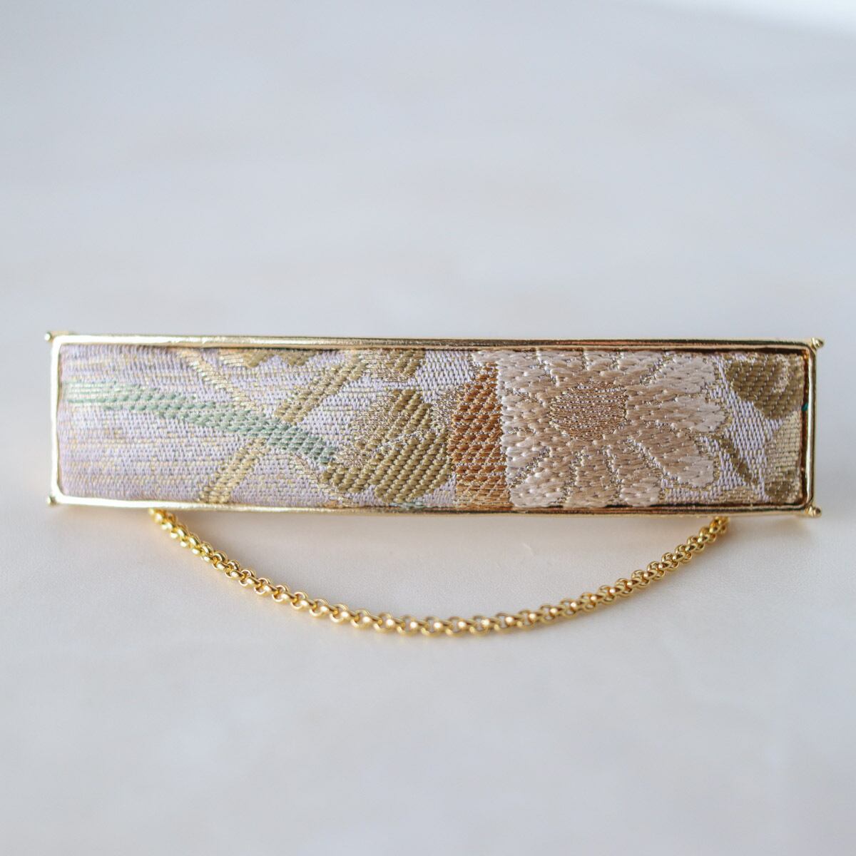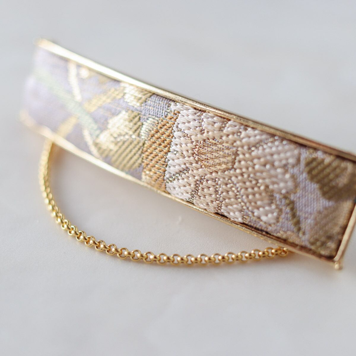 Although it is small, it is an elegant barrette that conveys the luster of silk and the luxury of the obi.