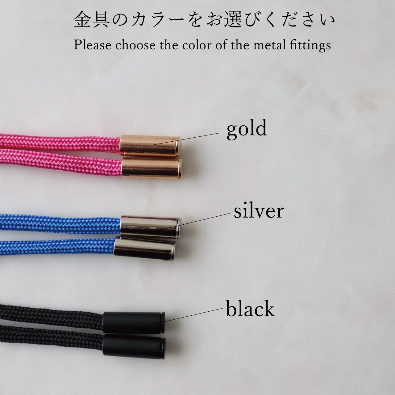 金具をゴールドとシルバー、ブラックよりお選びください