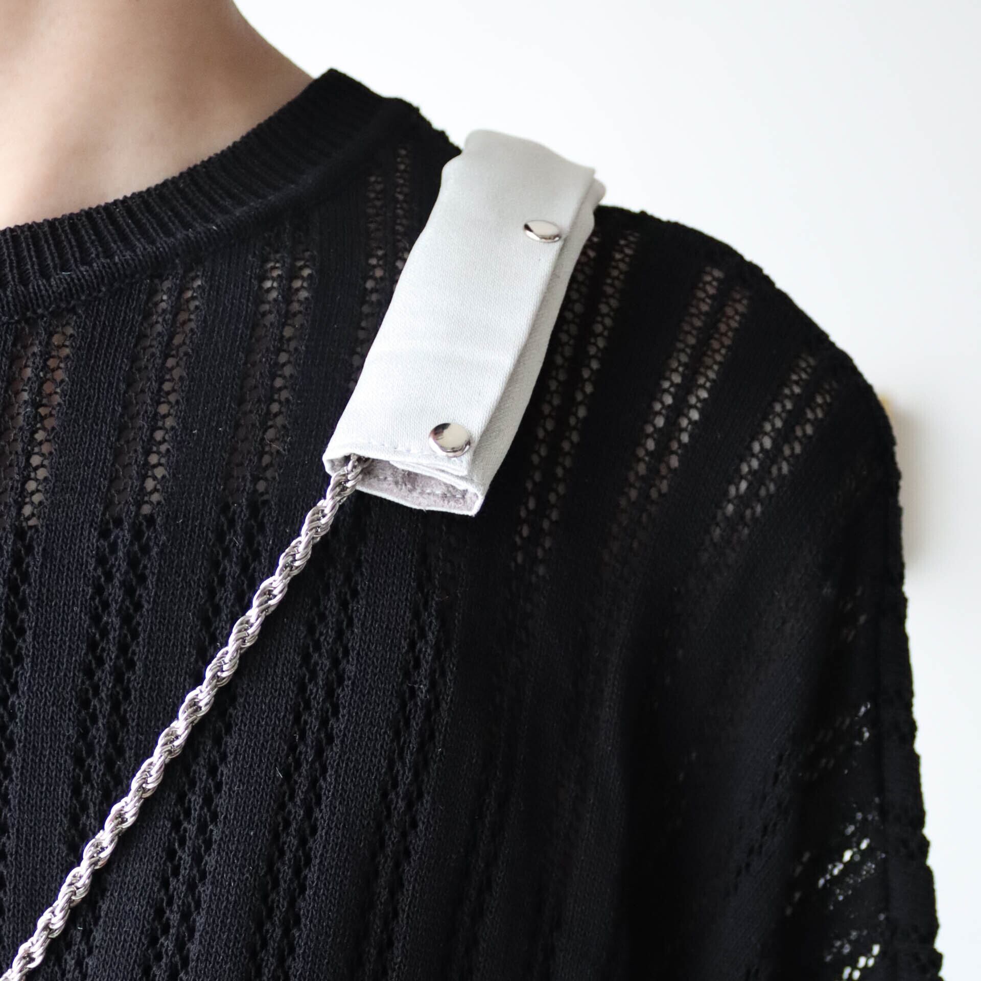 中にスポンジをいれチェーンの肩へのあたりを和らげ、内側にスエードを貼り滑りにくいようにしております。