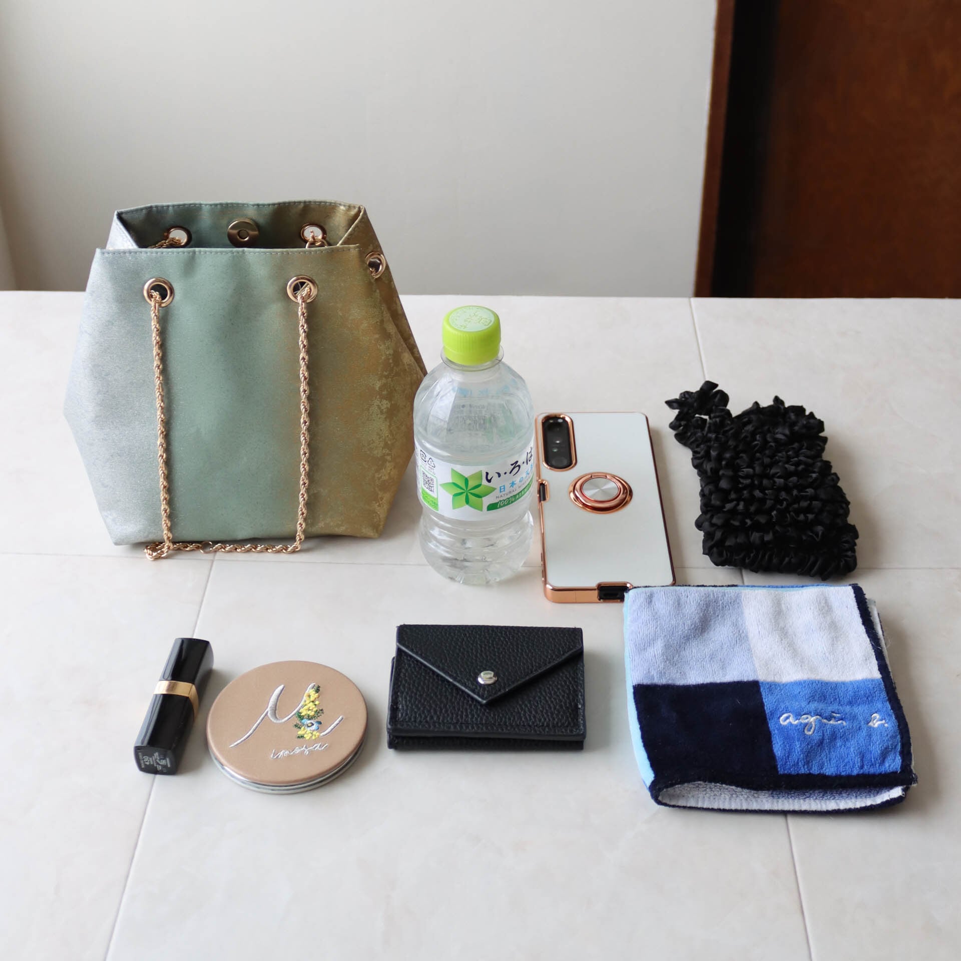 Obi Drawstring Bag Cube /薄抹茶色にシルバーゴールド/Green & Silver ~ Gold