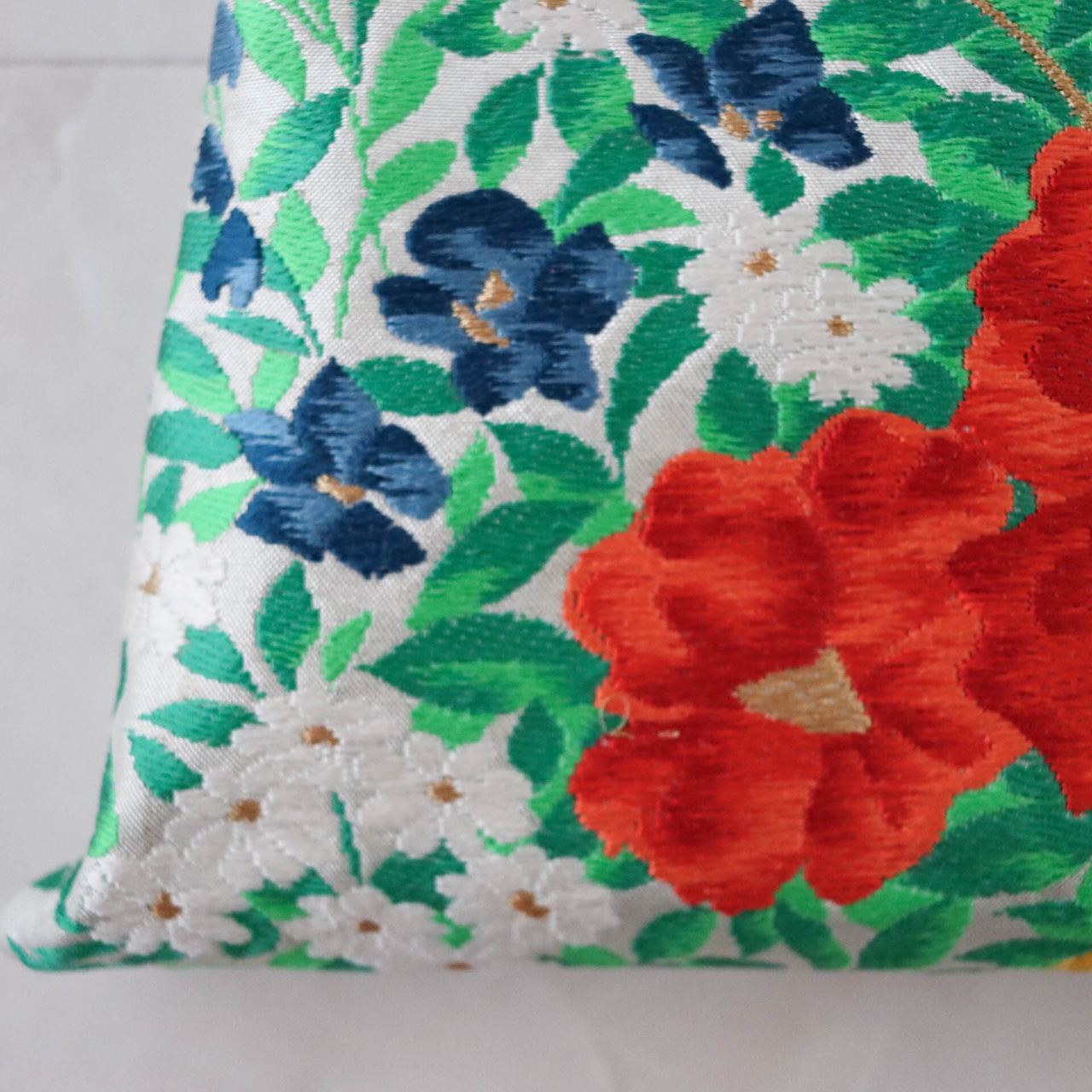 Obi Drawstring Bag Small /シルバーに花づくし模様/Silver flower pattern