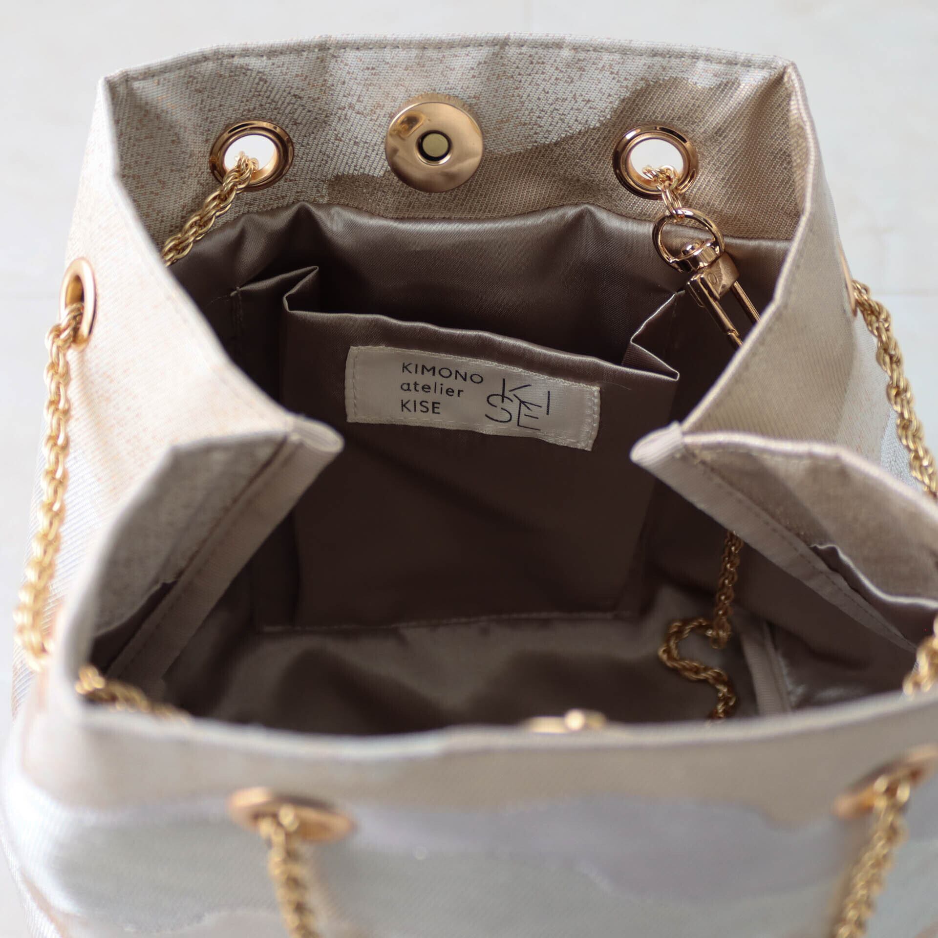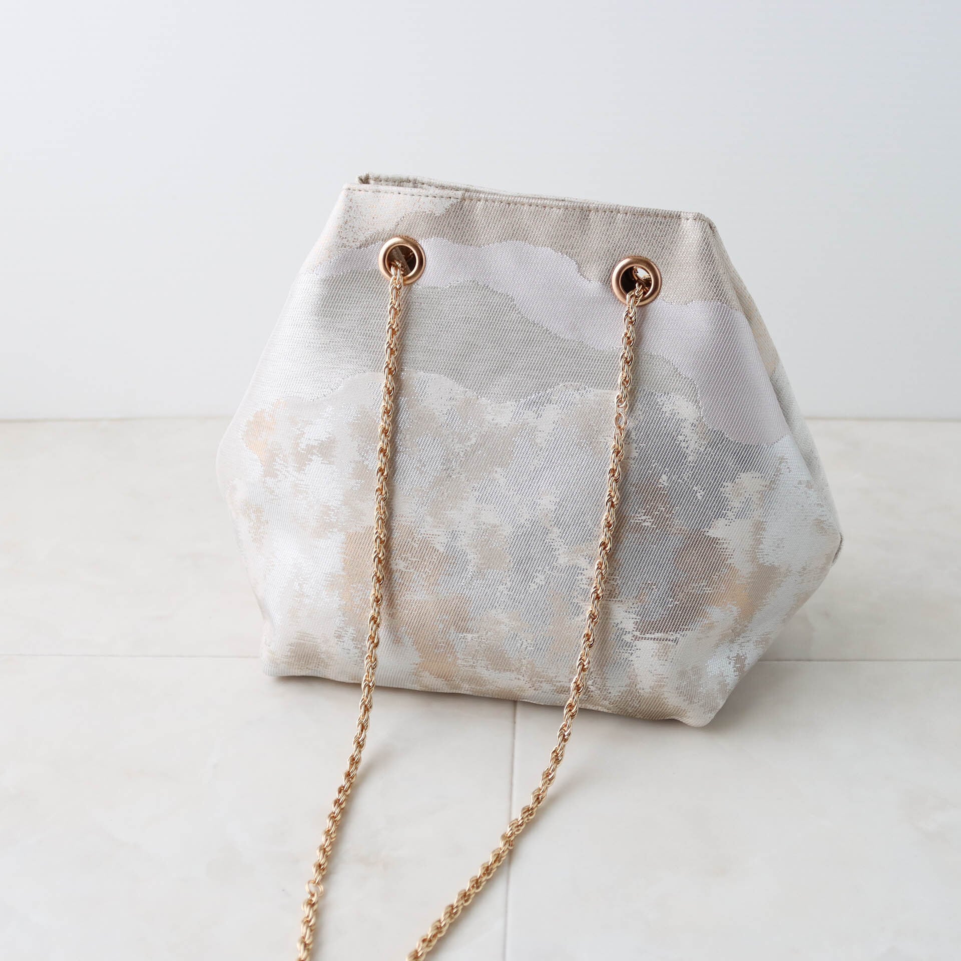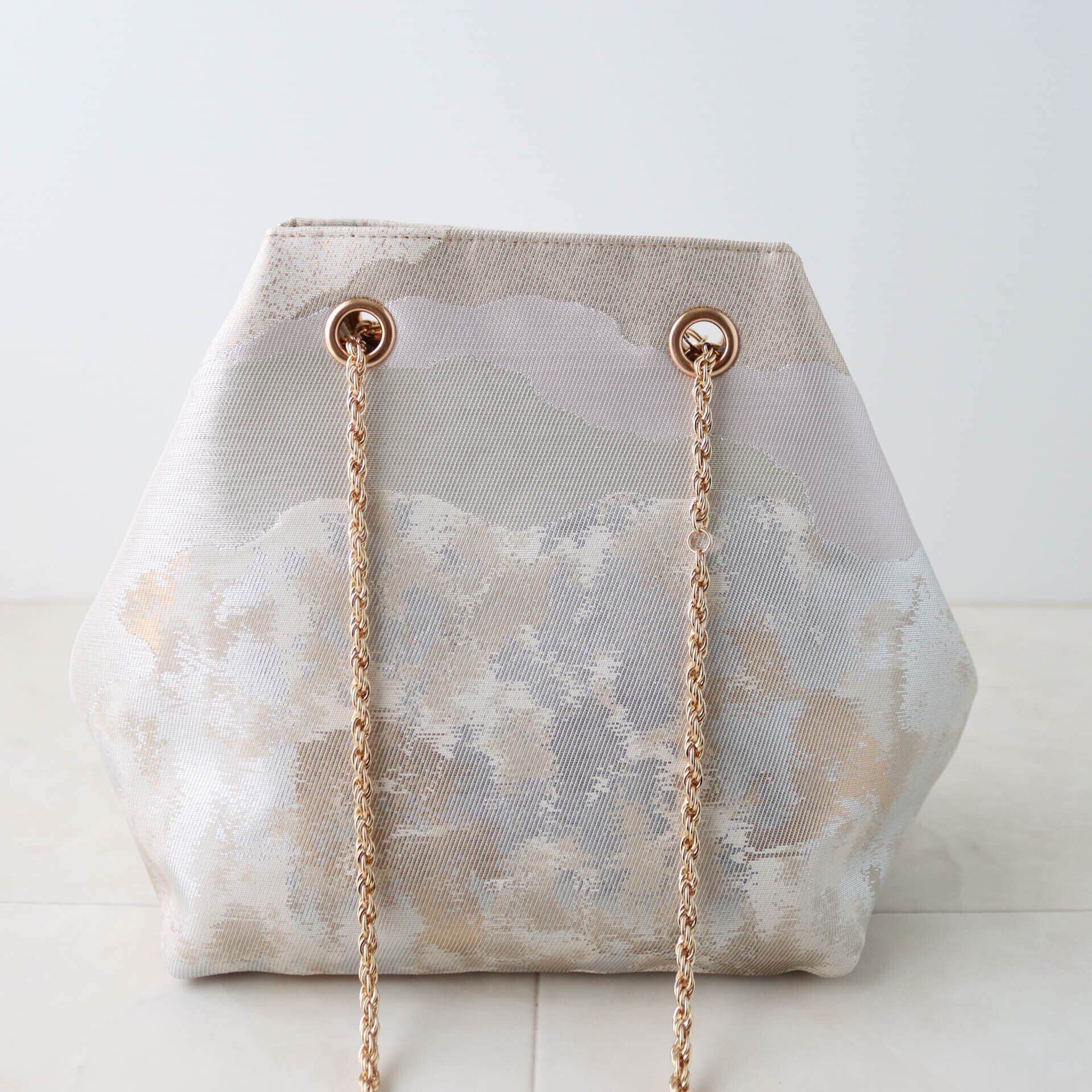Obi Drawstring Bag Cube /引箔ベージュマーブル模様/ beige marble pattern