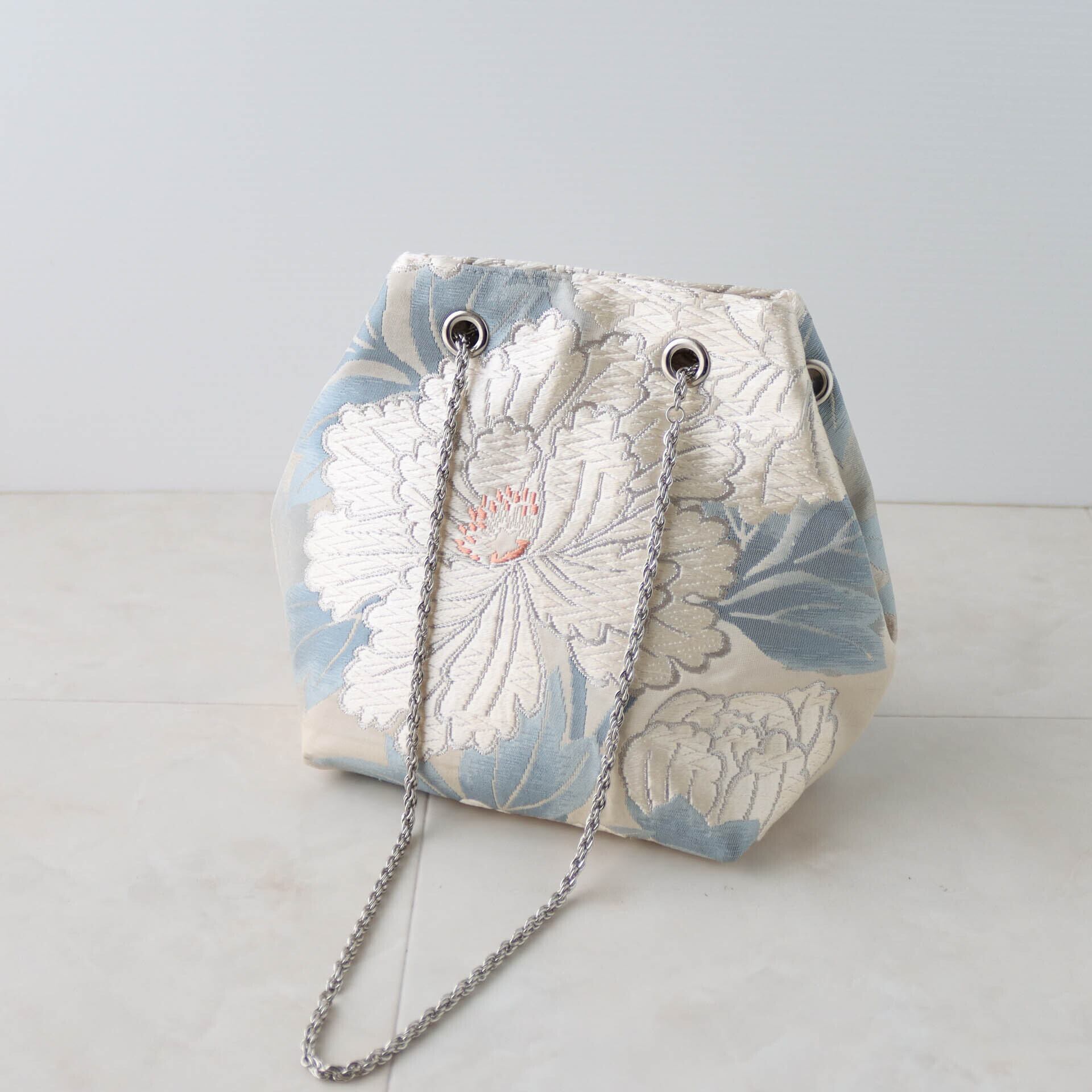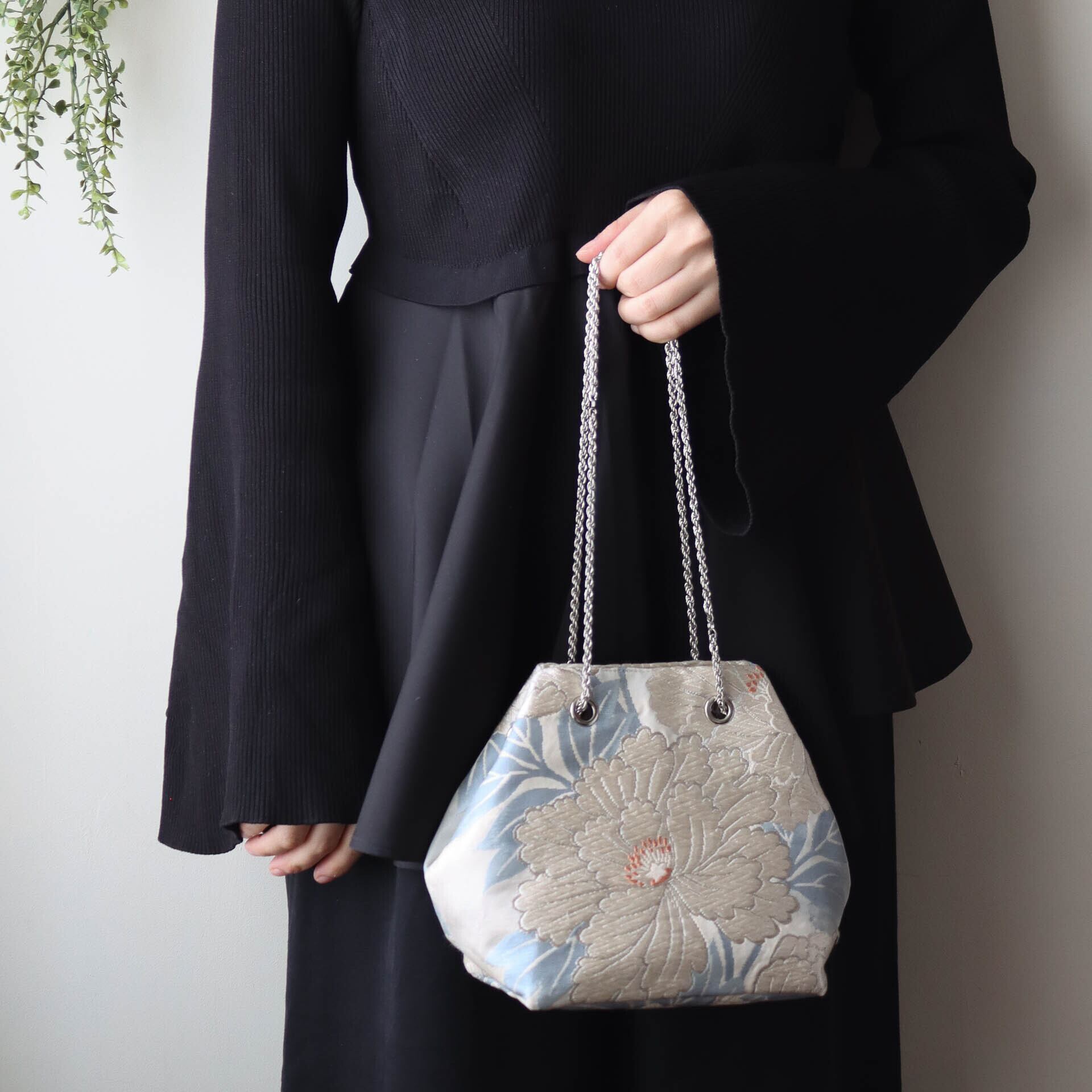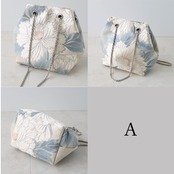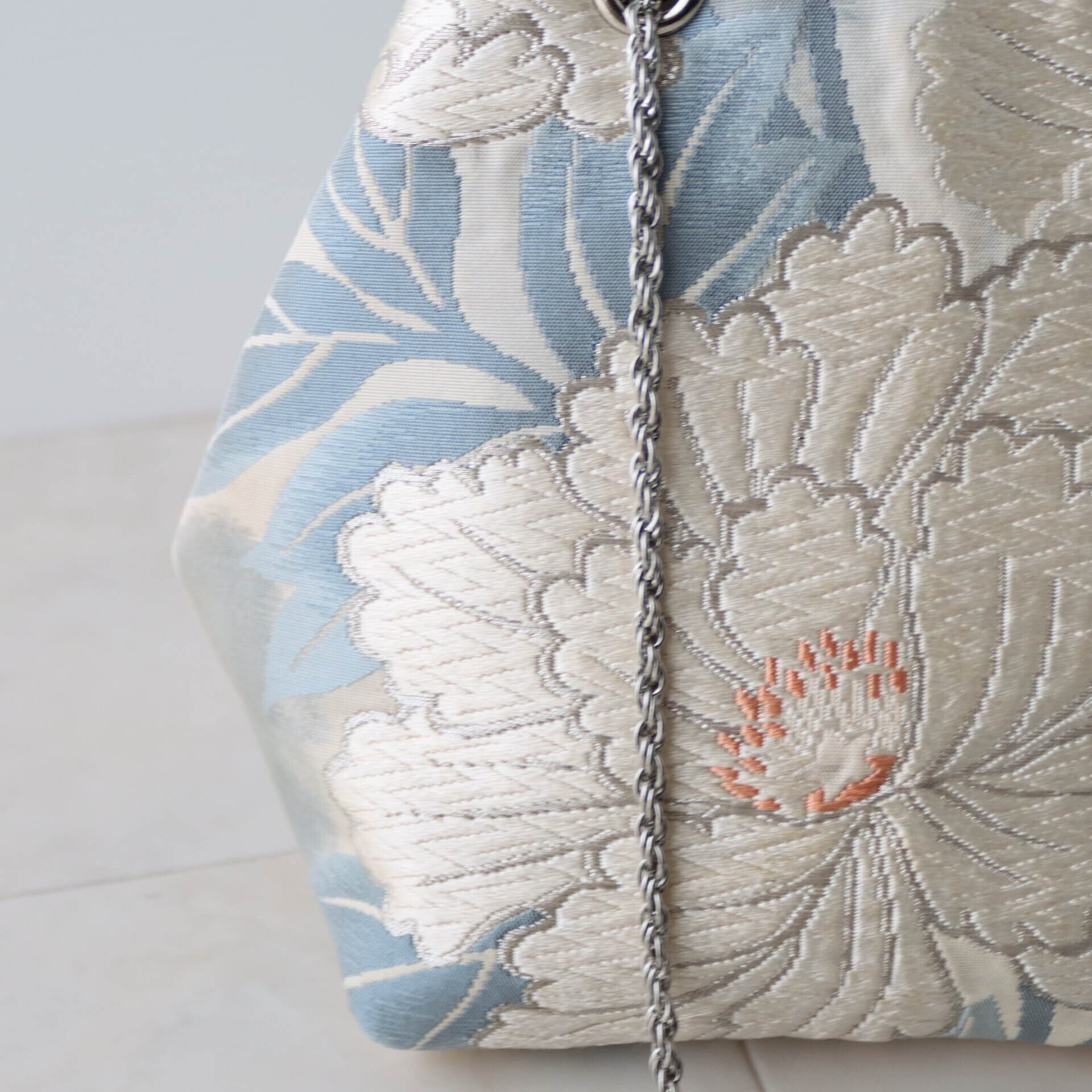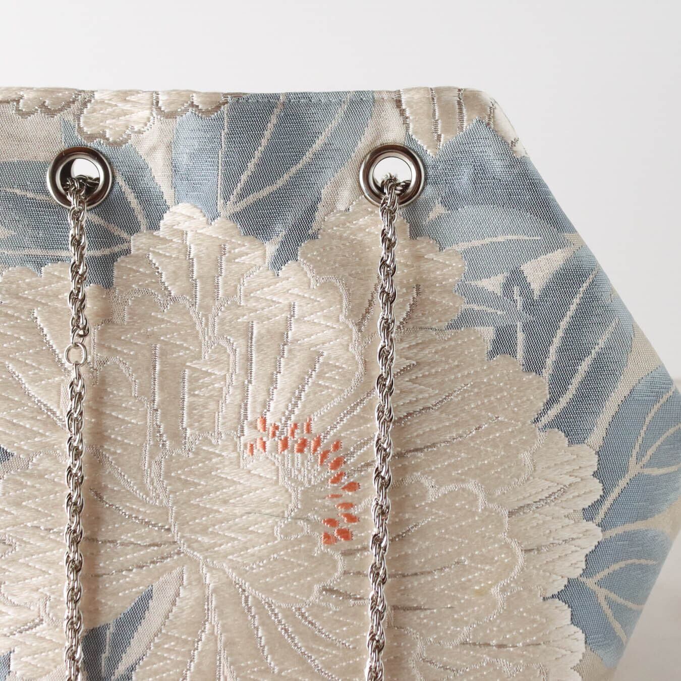 Obi Drawstring Bag Cube /白銀牡丹(唐織)/white peony embroidery