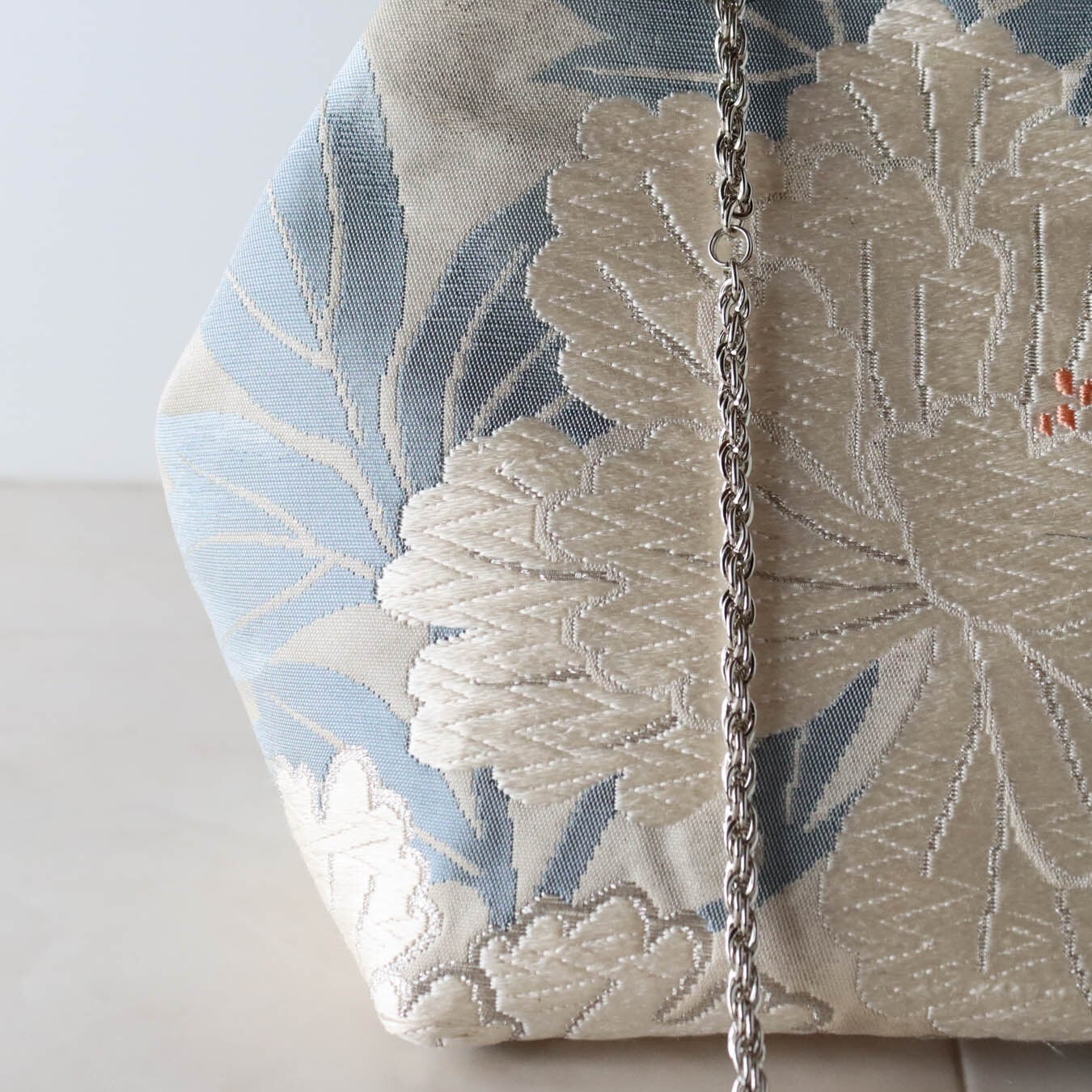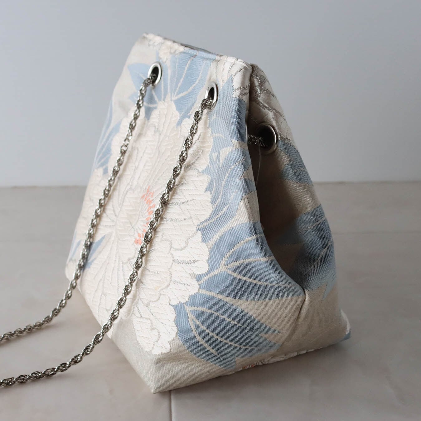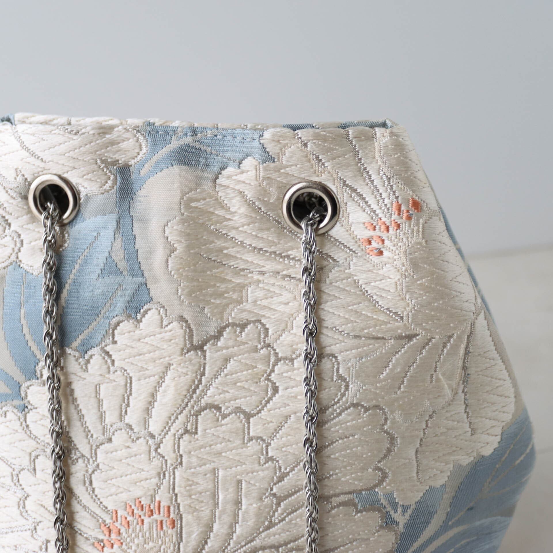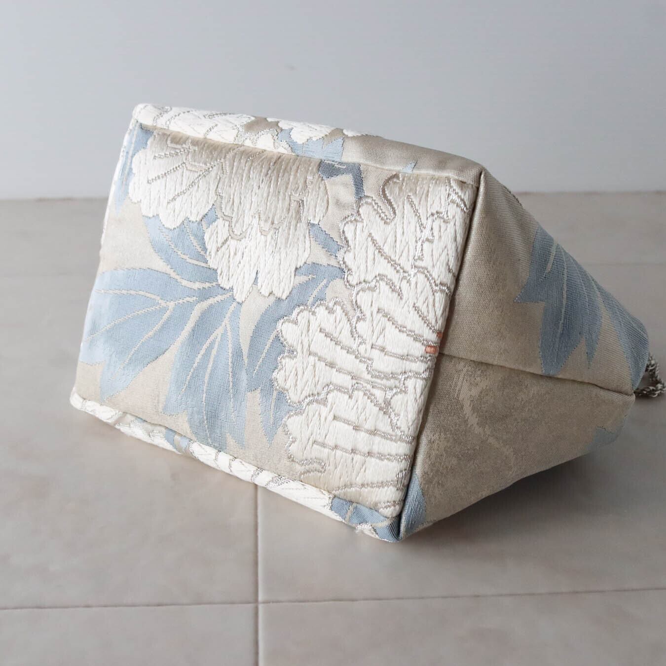 Obi Drawstring Bag Cube /白銀牡丹(唐織)/white peony embroidery