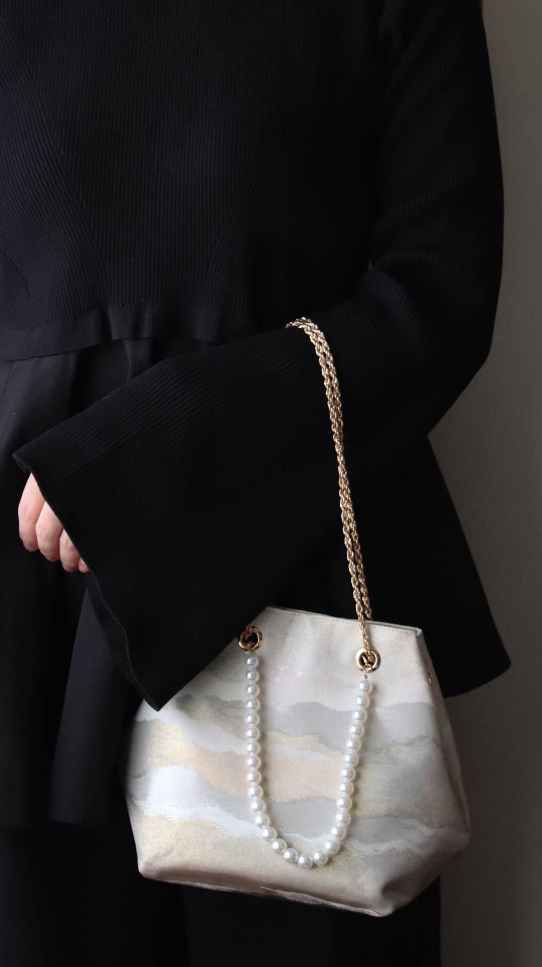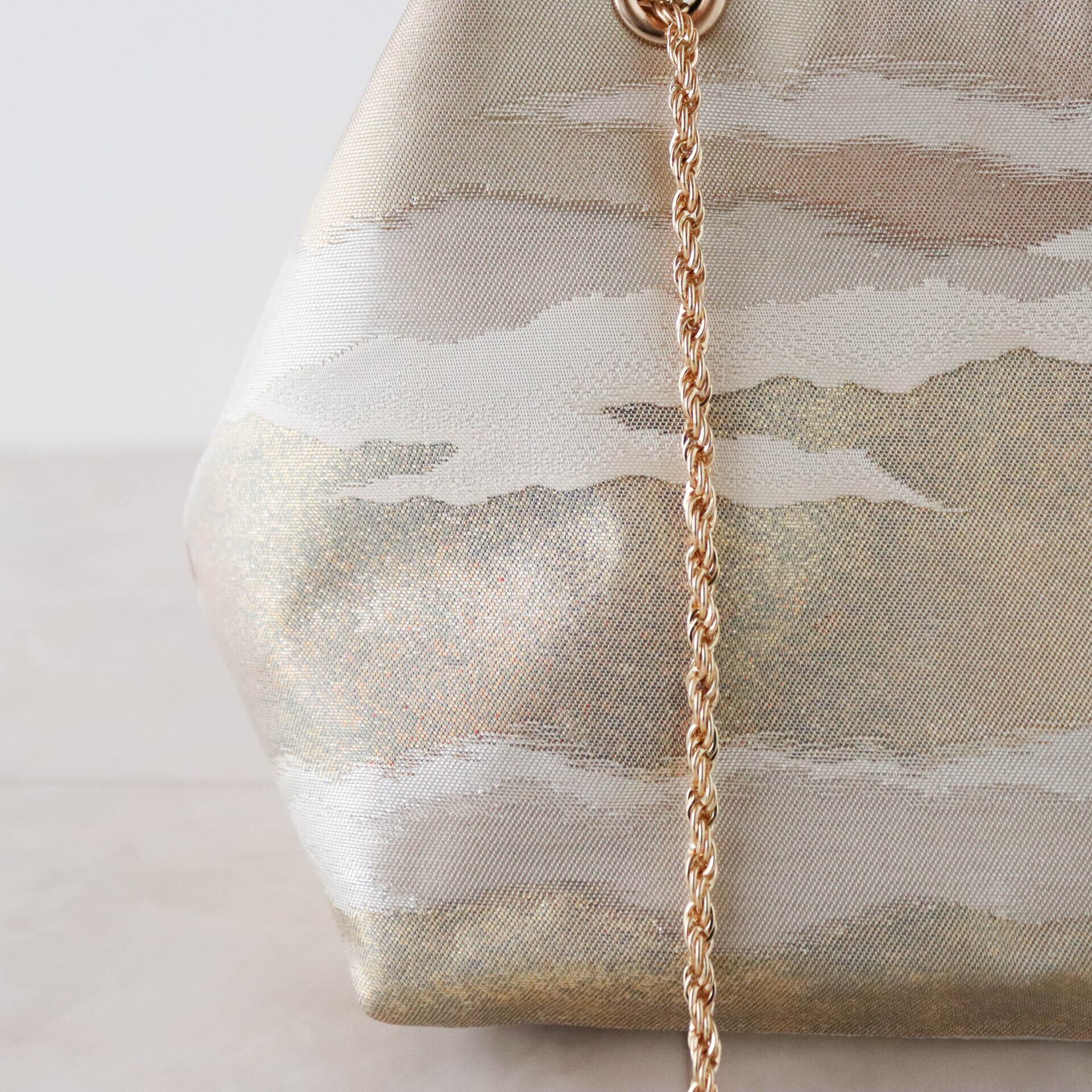 Obi Drawstring Bag Cube /ベージュ地に霞模様/Haze pattern on beige background