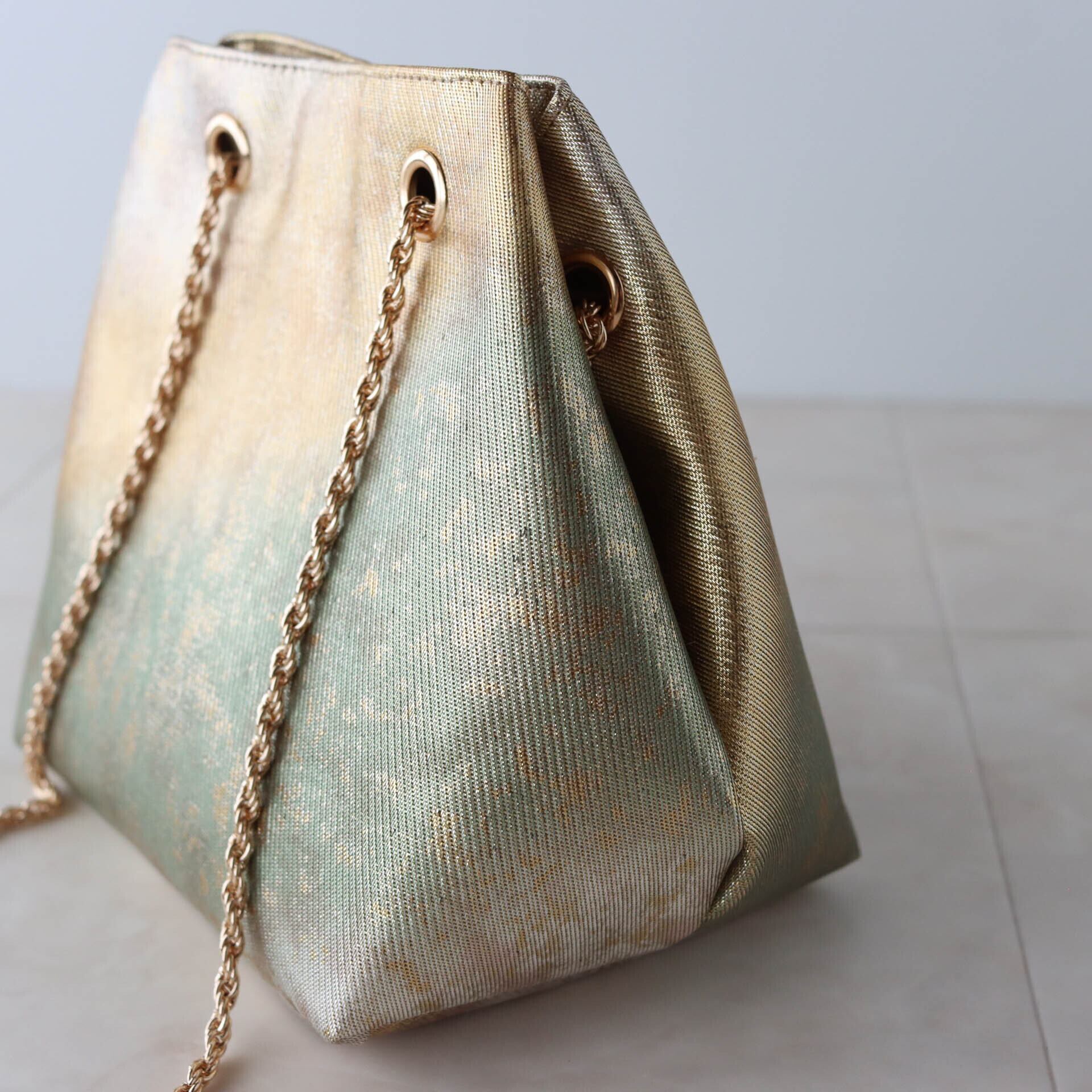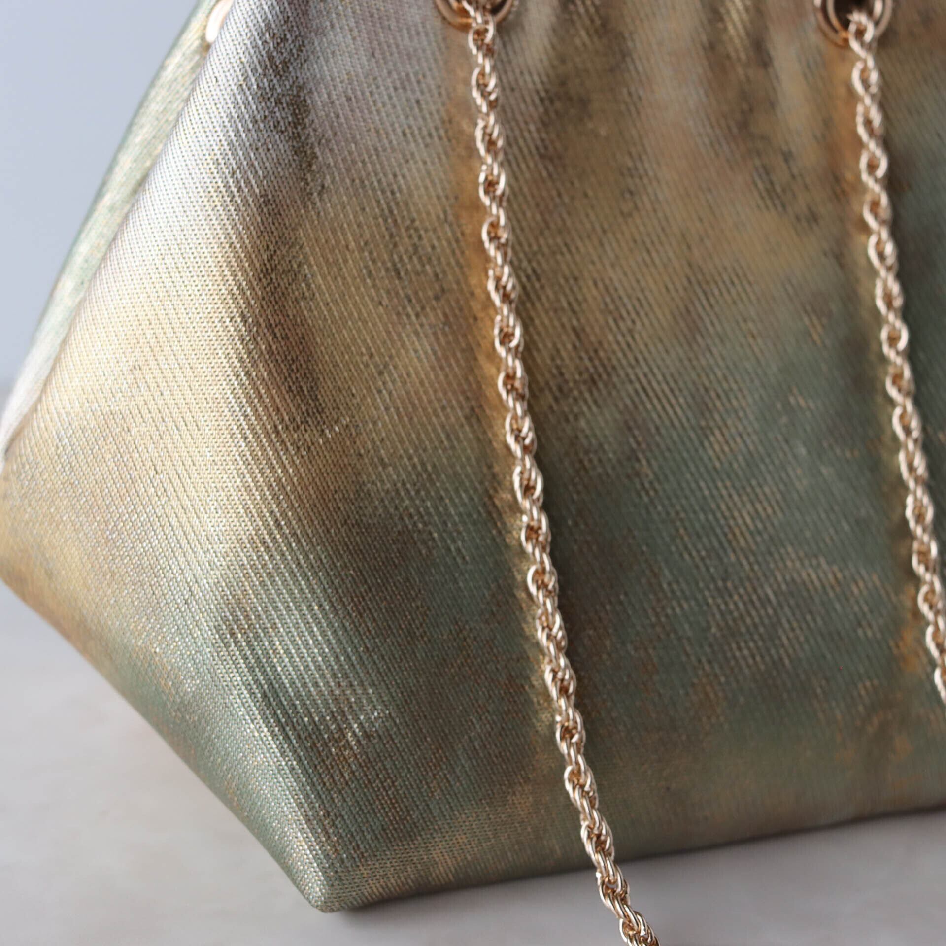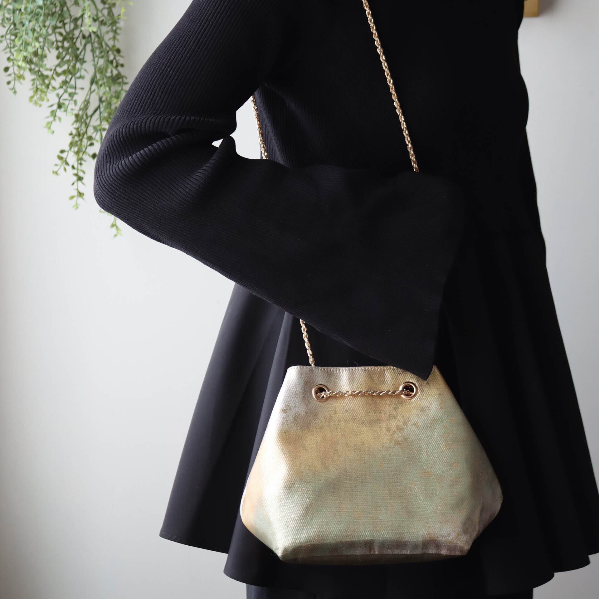 やさしいカラーでありながらパーティに映えるメタリックバッグです。