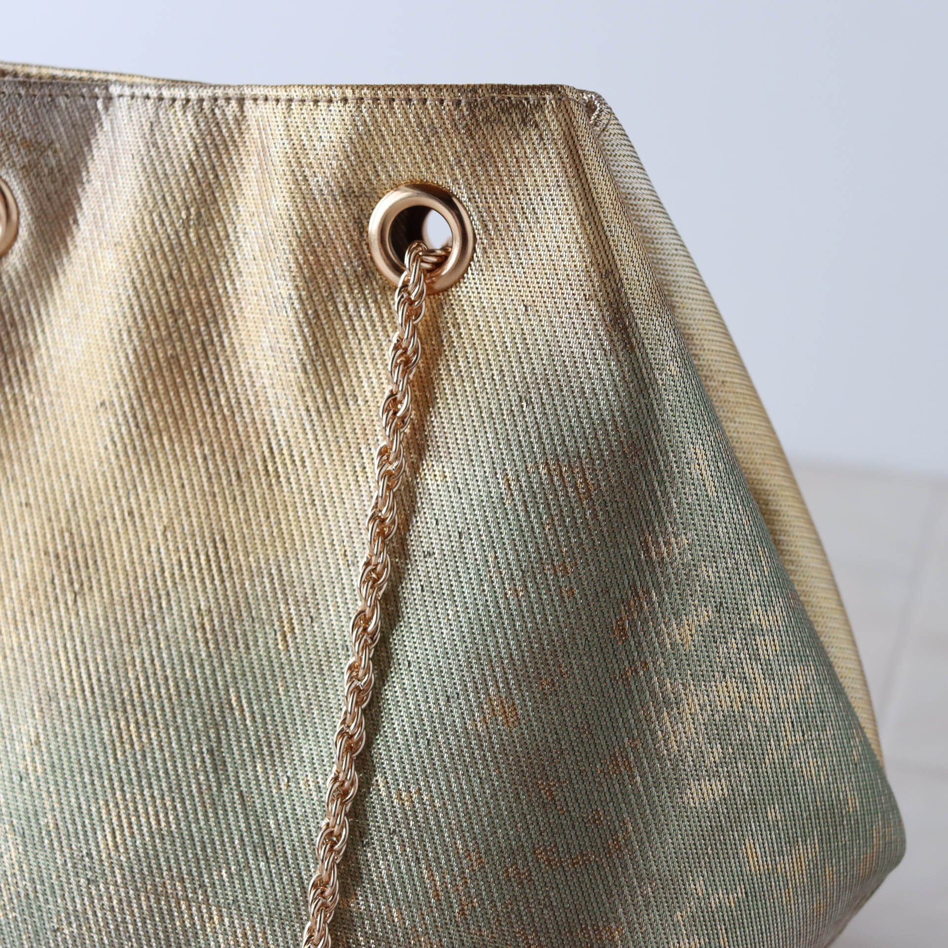 Obi Drawstring Bag Cube /グリーンゴールド道長模様/green gold curve flow