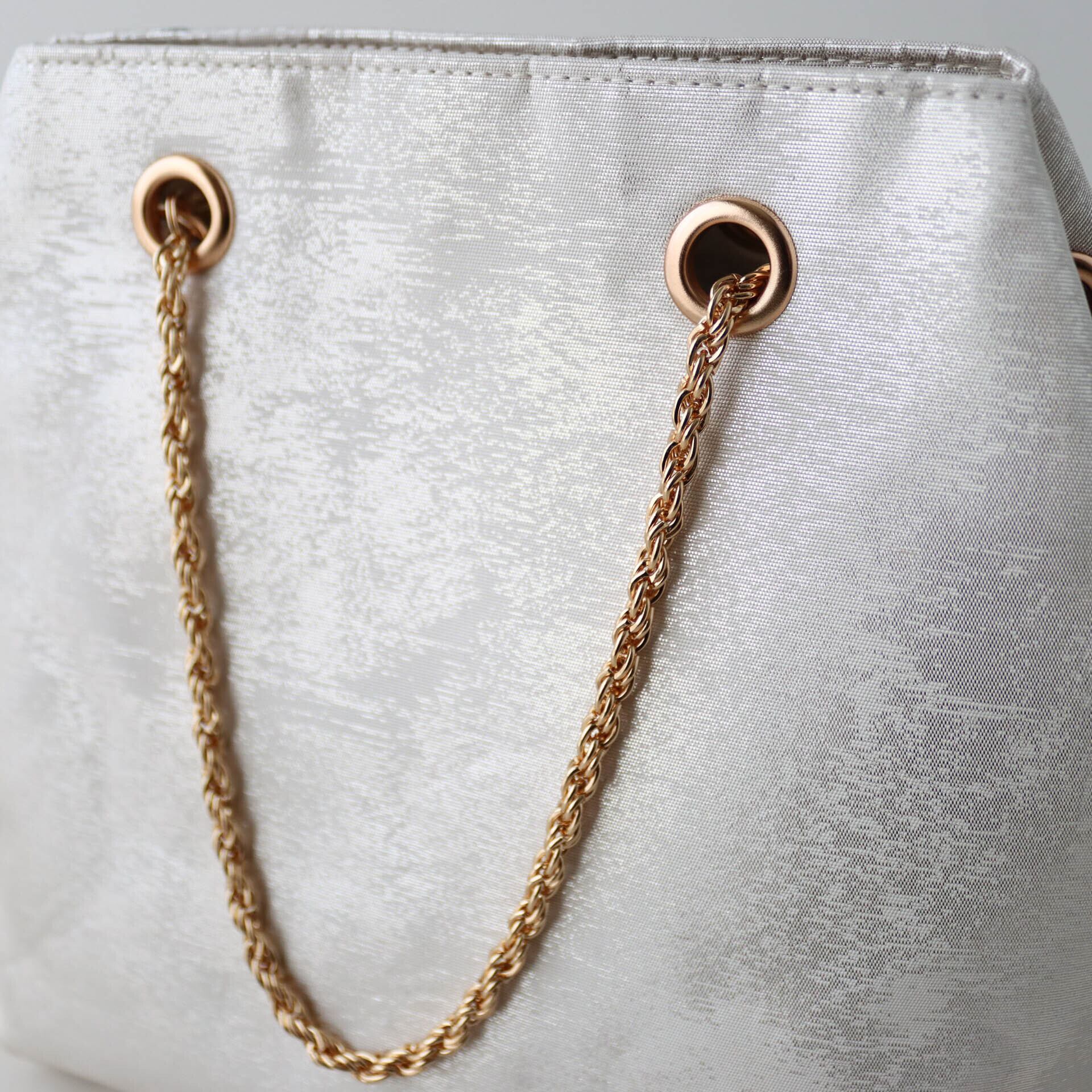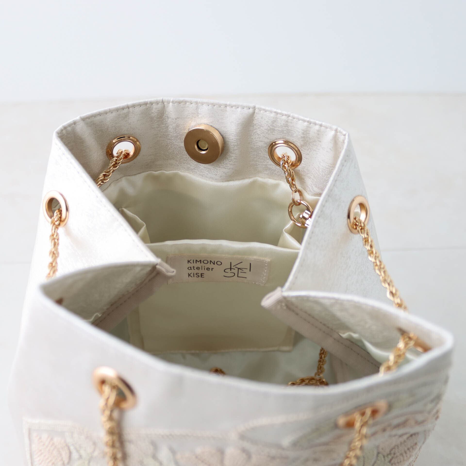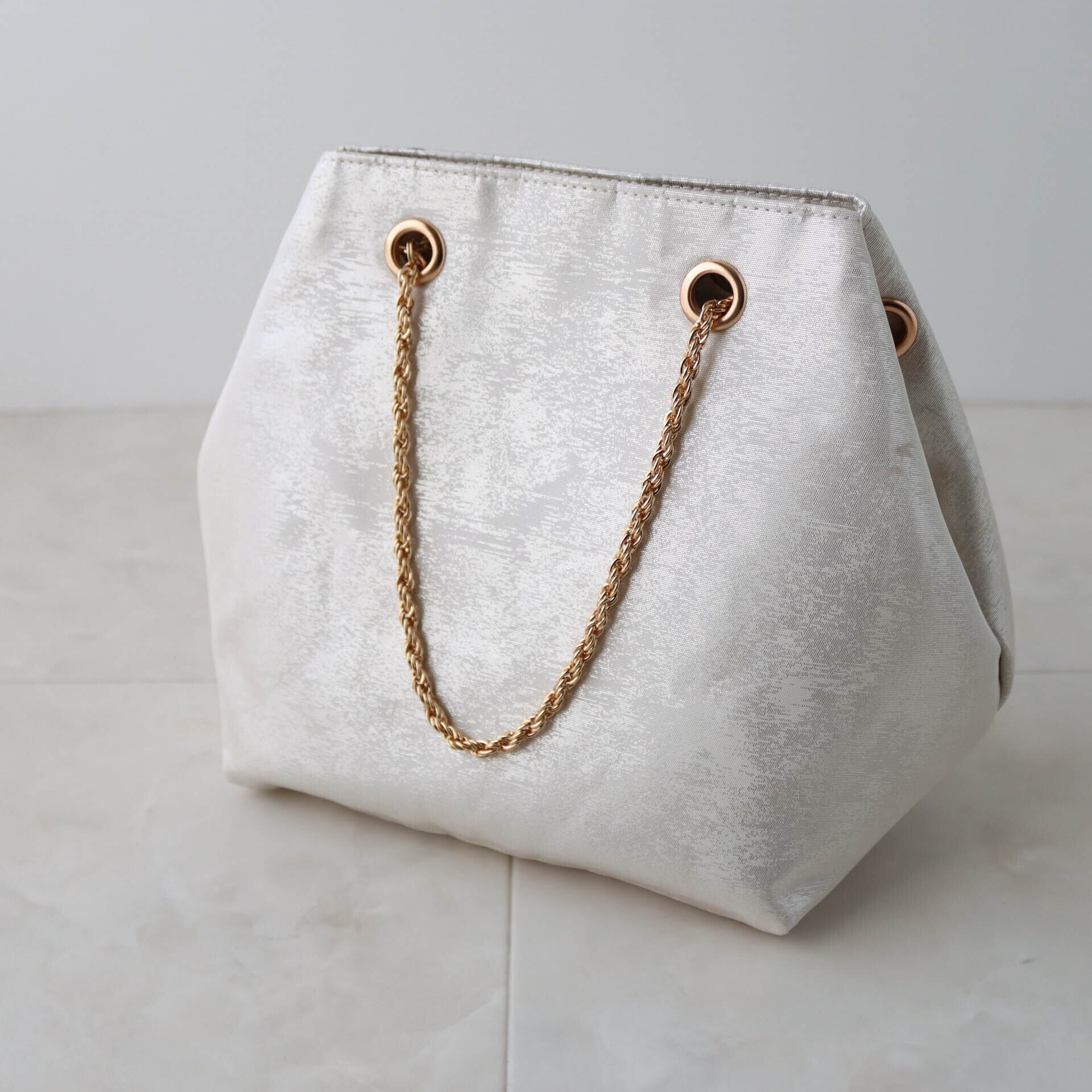全体的に淡いトーンで仕上げられ、上品にお持ちいただけるバッグです。
