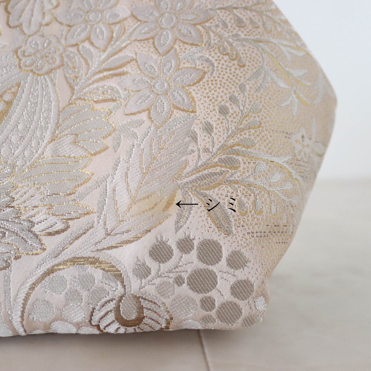 シミや汚れがあるものは、なるべく目立たないように裁断し制作しておりますが、場合によっては見える箇所にシミや汚れが残る場合がございます。